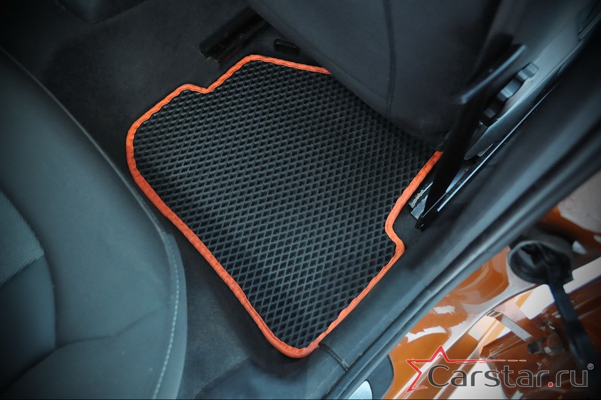 Автомобильные коврики EVA прекрасно подходят для всех существующих марок и моделей авто, здесь вы сможете заказать оптимальный аксессуар любого возможного цвета. По размерам они больше, чем стандартные резиновые коврики, поэтому покрывают максимальную площадь пола в салоне. А двойная система креплений (клипсы и липучки) позволяет надежно зафиксировать коврики в нужном месте.