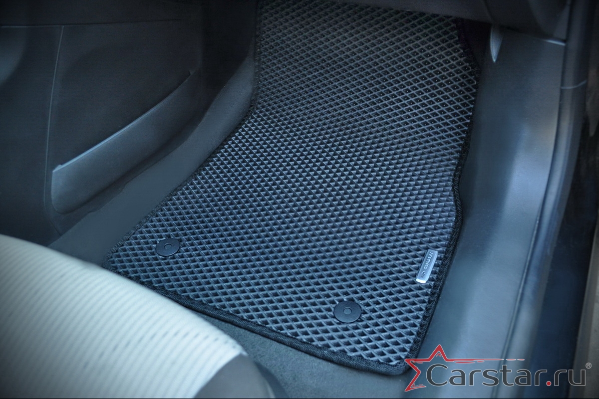 Коврики EVA надёжно крепятся с помощью оригинальных систем фиксации. Благодаря клипсам и липучке коврики защищены от смещений, что обеспечивает комфорт и безопасность вождения. Максимальное удобство также достигается точными, улучшенными лекалами для каждого автомобиля.