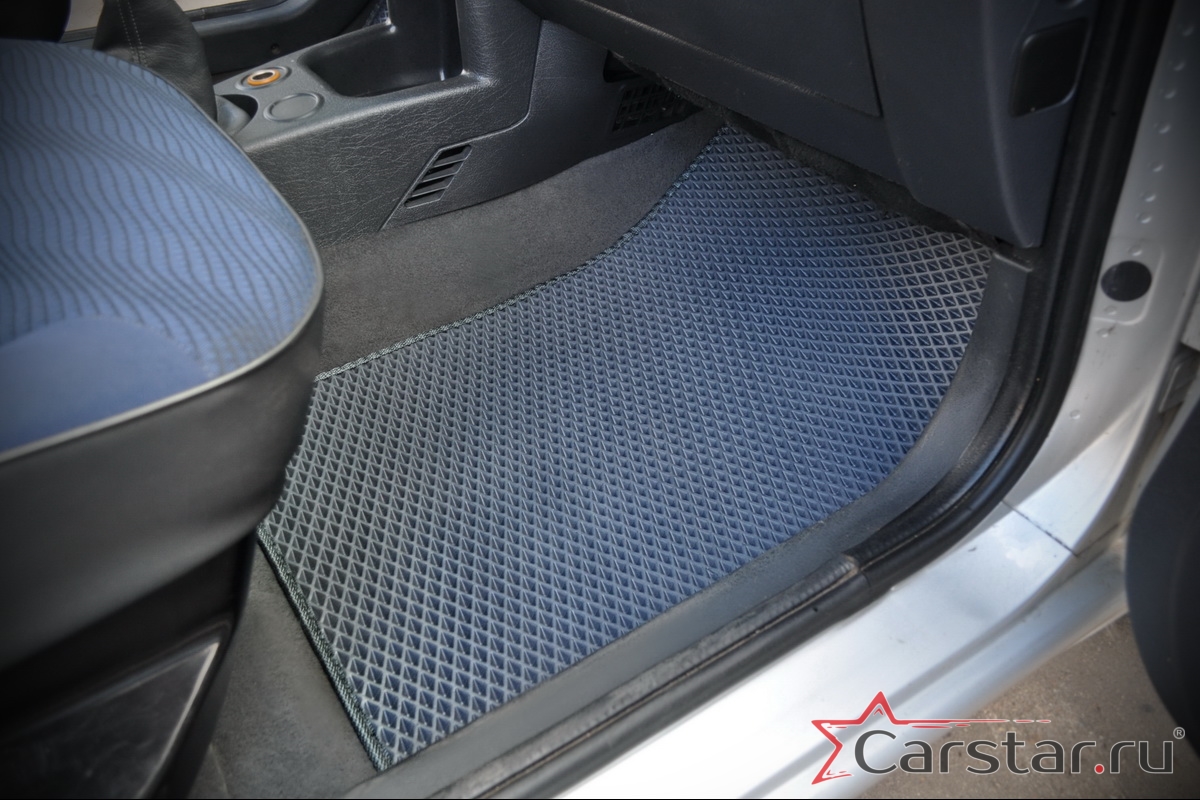Автомобильные коврики EVA прекрасно подходят для всех существующих марок и моделей авто, здесь вы сможете заказать оптимальный аксессуар любого возможного цвета. По размерам они больше, чем стандартные резиновые коврики, поэтому покрывают максимальную площадь пола в салоне. А двойная система креплений (клипсы и липучки) позволяет надежно зафиксировать коврики в нужном месте.