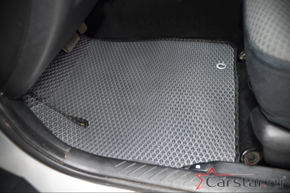 Толщина ковриков EVA составляет 10-12 мм. Глубина ячеек 7-8 мм. Такая толщина ковриков позволяет им служить довольно долго, не протираясь до 3 лет. А благодаря такой глубине ячеек коврик EVA площадью 1 кв.м. способен захватить около 3,5 л жидкости, сохраняя в чистоте вашу обувь и обивку салона.