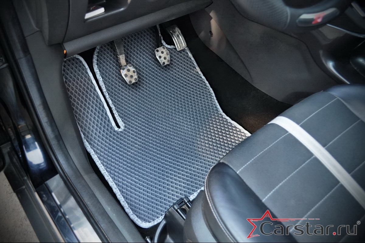 Автомобильные коврики EVA прекрасно подходят для всех существующих марок и моделей авто, здесь вы сможете заказать оптимальный аксессуар любого возможного цвета. По размерам они больше, чем стандартные резиновые коврики, поэтому покрывают максимальную площадь пола в салоне. А двойная система креплений (клипсы и липучки) позволяет надежно зафиксировать коврики в нужном месте.