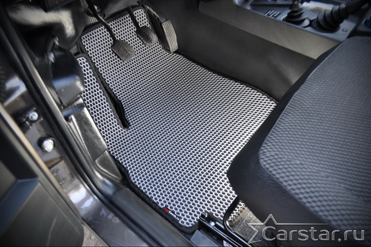Автомобильные коврики EVA Lada (ВАЗ) 2121 (4x4) Нива 3D (2014-2020) рестайл1 – это долговечные, удобные и универсальные аксессуары, которые помогут надежно защитить салон и багажник вашего авто от пыли, грязи и влаги в любое время года.