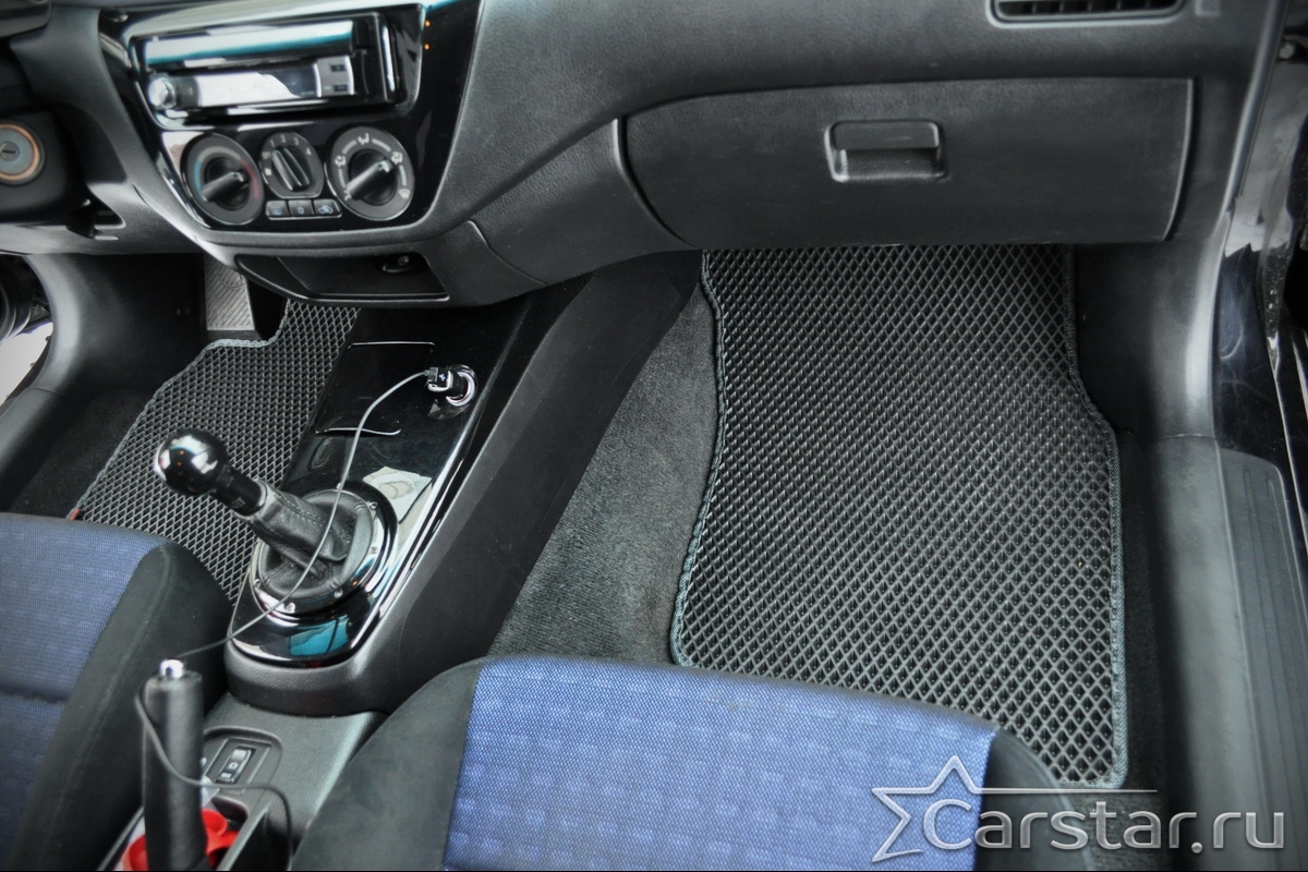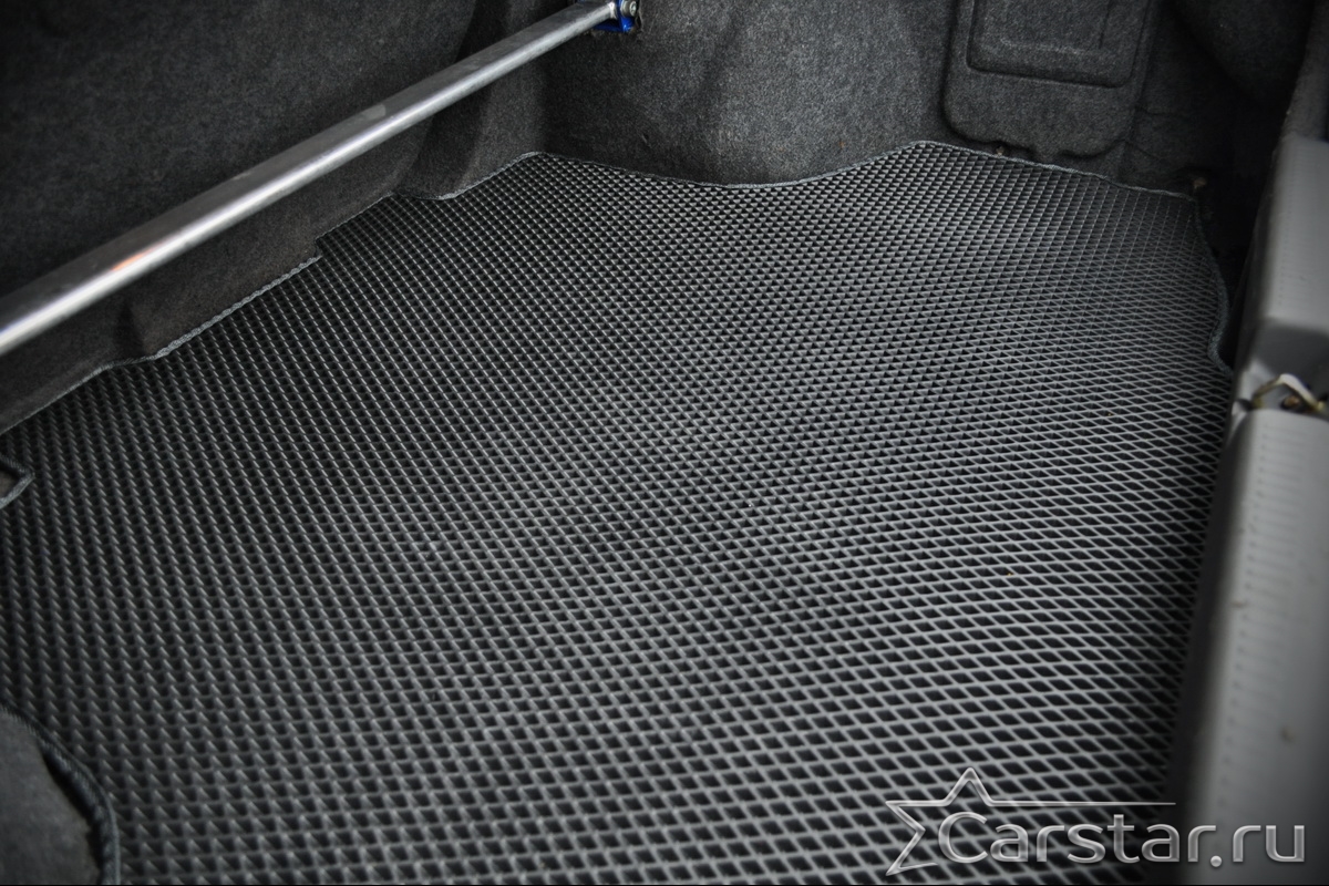 Толщина ковриков EVA составляет 10-12 мм. Глубина ячеек 7-8 мм. Такая толщина ковриков позволяет им служить довольно долго, не протираясь до 3 лет. А благодаря такой глубине ячеек коврик EVA площадью 1 кв.м. способен захватить около 3,5 л жидкости, сохраняя в чистоте вашу обувь и обивку салона.