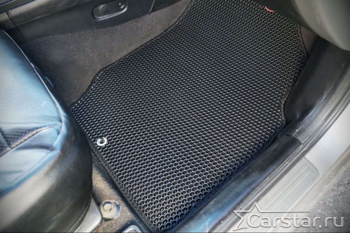 Толщина ковриков EVA составляет 10-12 мм. Глубина ячеек 7-8 мм. Такая толщина ковриков позволяет им служить довольно долго, не протираясь до 3 лет. А благодаря такой глубине ячеек коврик EVA площадью 1 кв.м. способен захватить около 3,5 л жидкости, сохраняя в чистоте вашу обувь и обивку салона.