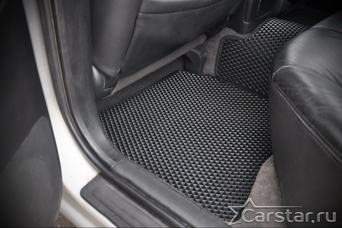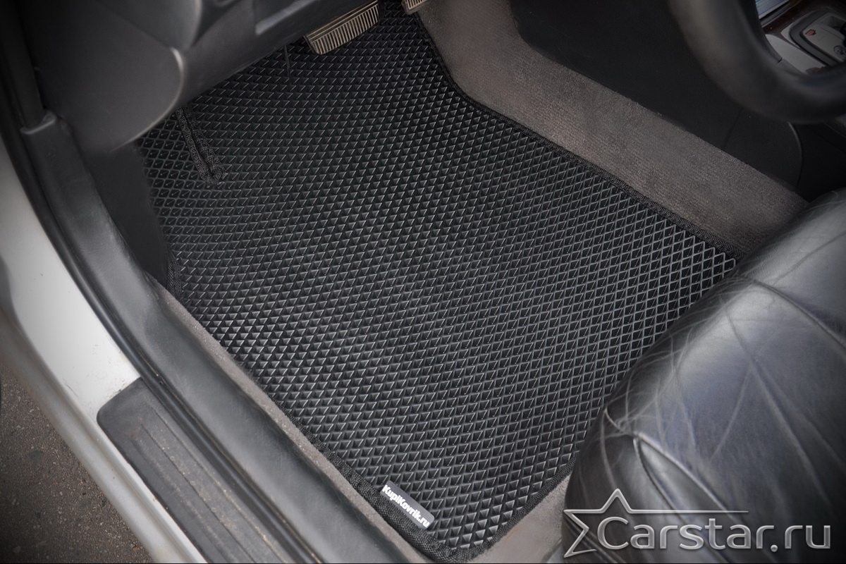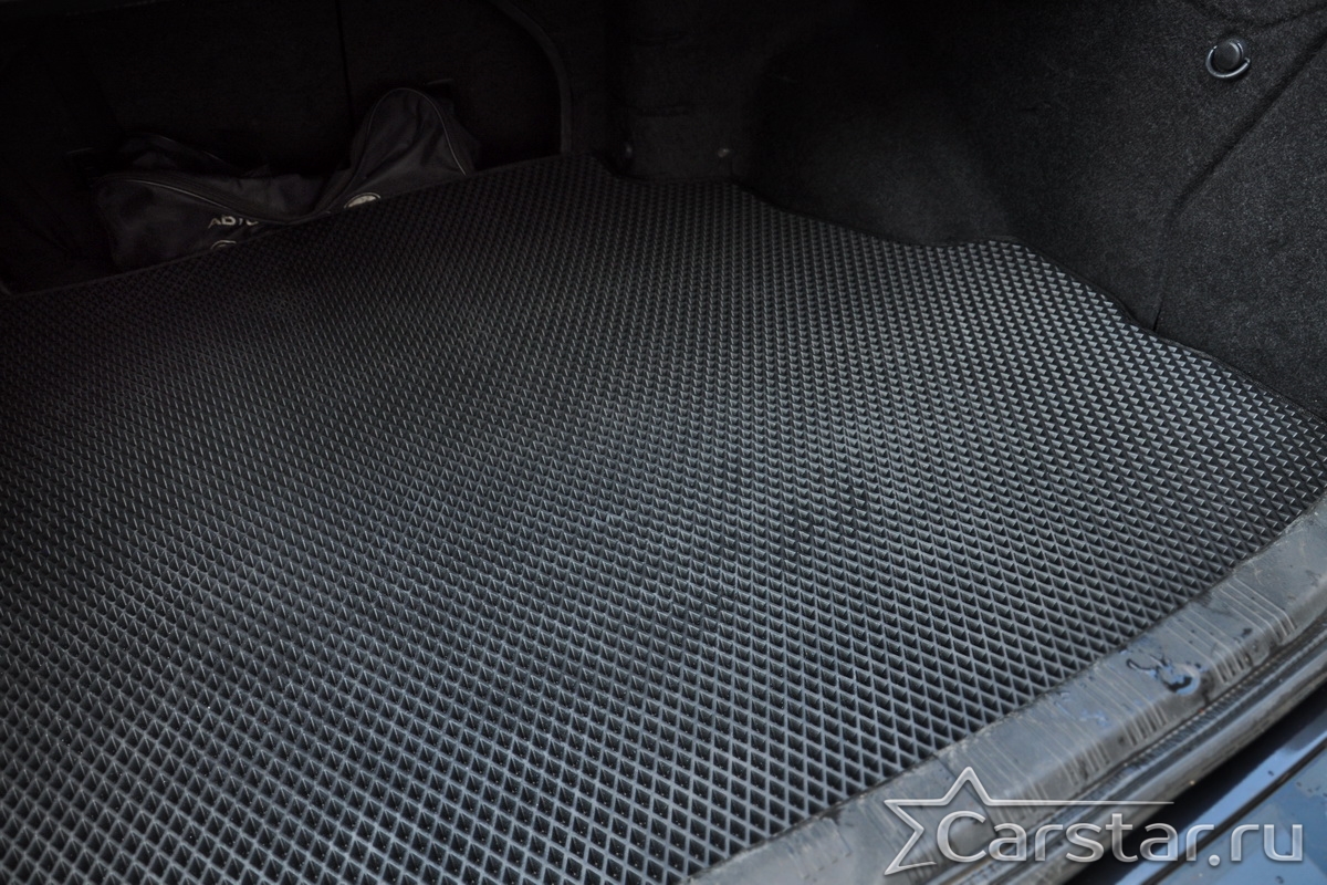 Толщина ковриков EVA составляет 10-12 мм. Глубина ячеек 7-8 мм. Такая толщина ковриков позволяет им служить довольно долго, не протираясь до 3 лет. А благодаря такой глубине ячеек коврик EVA площадью 1 кв.м. способен захватить около 3,5 л жидкости, сохраняя в чистоте вашу обувь и обивку салона.