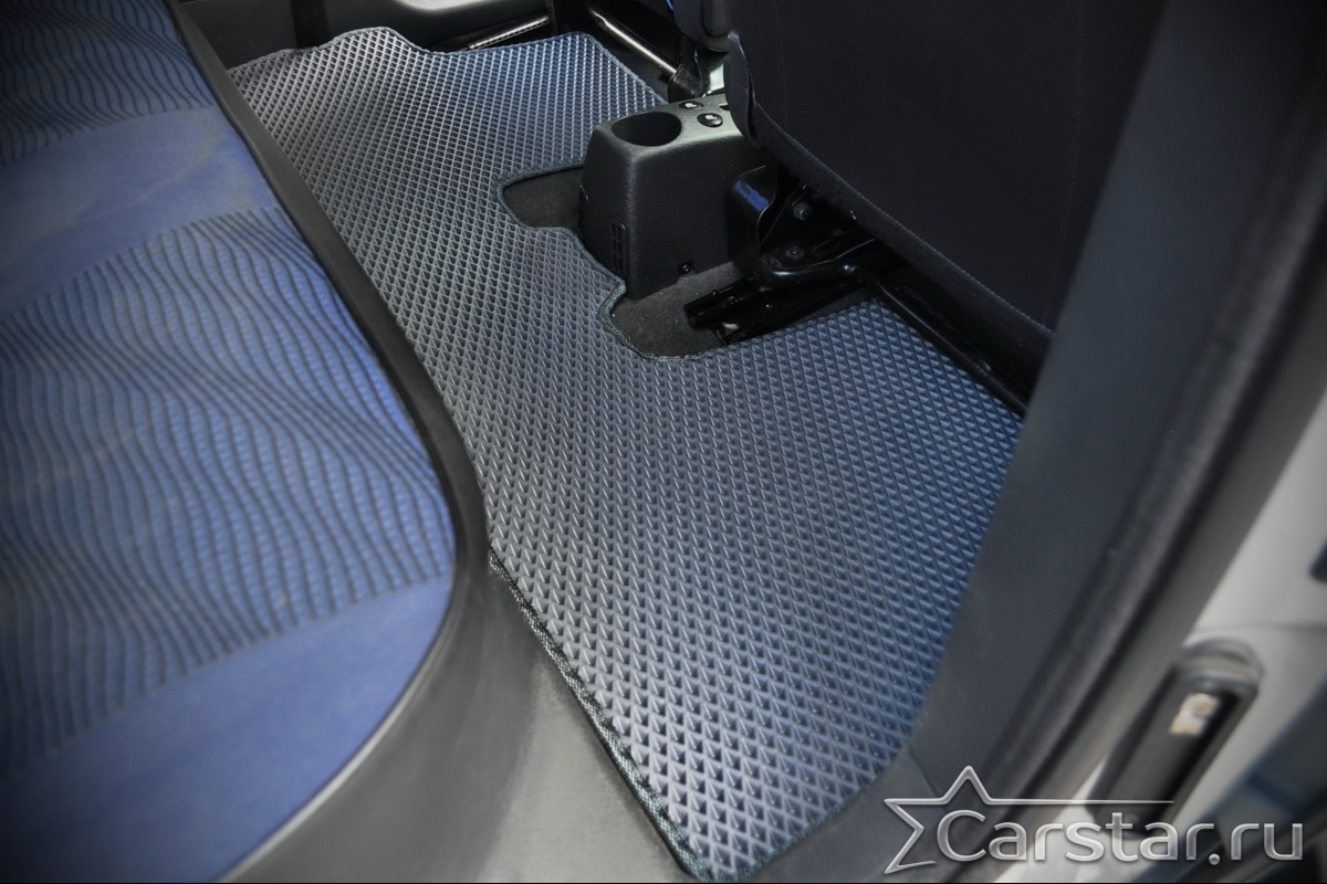 Толщина ковриков EVA составляет 10-12 мм. Глубина ячеек 7-8 мм. Такая толщина ковриков позволяет им служить довольно долго, не протираясь до 3 лет. А благодаря такой глубине ячеек коврик EVA площадью 1 кв.м. способен захватить около 3,5 л жидкости, сохраняя в чистоте вашу обувь и обивку салона.