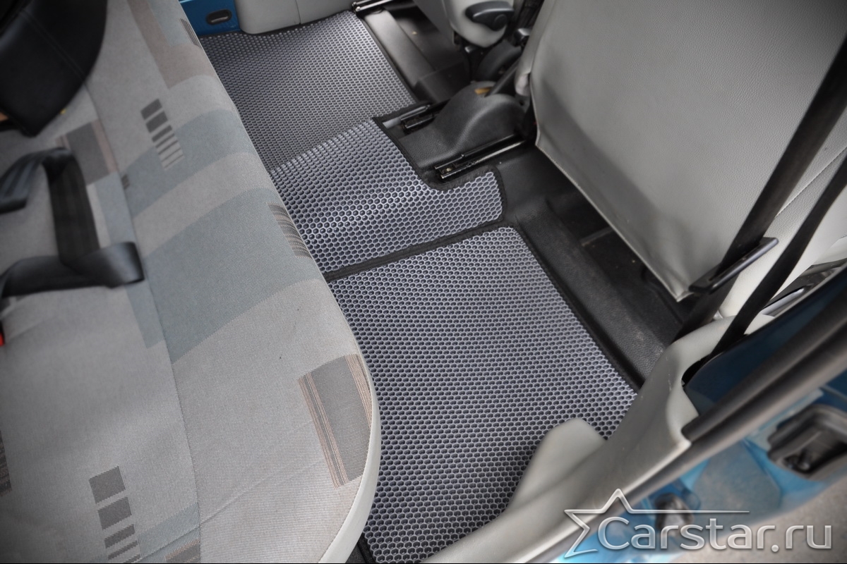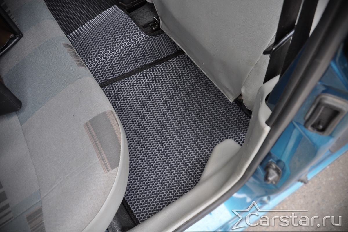 Толщина ковриков EVA составляет 10-12 мм. Глубина ячеек 7-8 мм. Такая толщина ковриков позволяет им служить довольно долго, не протираясь до 3 лет. А благодаря такой глубине ячеек коврик EVA площадью 1 кв.м. способен захватить около 3,5 л жидкости, сохраняя в чистоте вашу обувь и обивку салона.