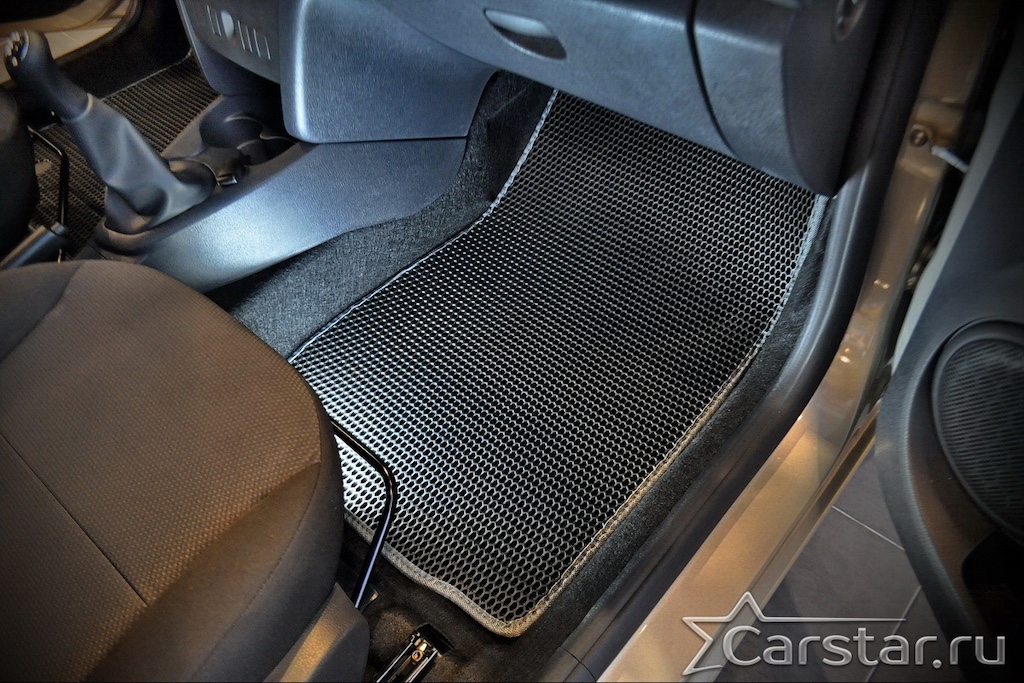 Коврики EVA надёжно крепятся с помощью оригинальных систем фиксации. Благодаря клипсам, а также липучке, коврики защищены от смещений, что обеспечивает комфорт и безопасность вождения. Максимальное удобство также достигается точными, улучшенными лекалами для каждого автомобиля.
