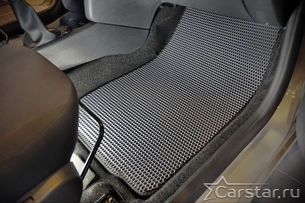Автомобильные коврики EVA прекрасно подходят для всех существующих марок и моделей авто, здесь вы сможете заказать оптимальный аксессуар любого возможного цвета. По размерам они больше, чем стандартные резиновые коврики, поэтому покрывают максимальную площадь пола в салоне. А двойная система креплений (клипсы и липучки) позволяет надежно зафиксировать коврики в нужном месте.