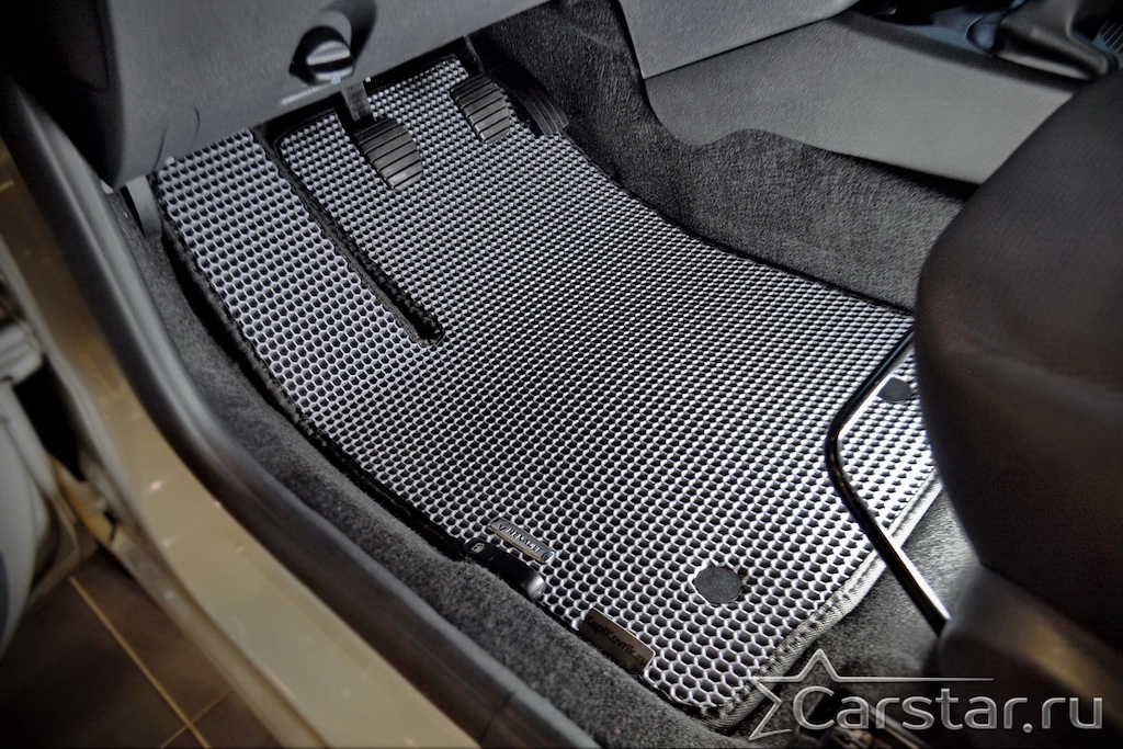 Коврики EVA надёжно крепятся с помощью оригинальных систем фиксации. Благодаря клипсам и липучке коврики защищены от смещений, что обеспечивает комфорт и безопасность вождения. Максимальное удобство также достигается точными, улучшенными лекалами для каждого автомобиля.