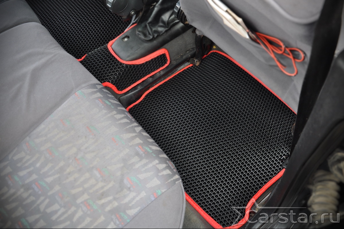 Толщина ковриков EVA составляет 10-12 мм. Глубина ячеек 7-8 мм. Такая толщина ковриков позволяет им служить довольно долго, не протираясь до 3 лет. А благодаря такой глубине ячеек коврик EVA площадью 1 кв.м. способен захватить около 3,5 л жидкости, сохраняя в чистоте вашу обувь и обивку салона.