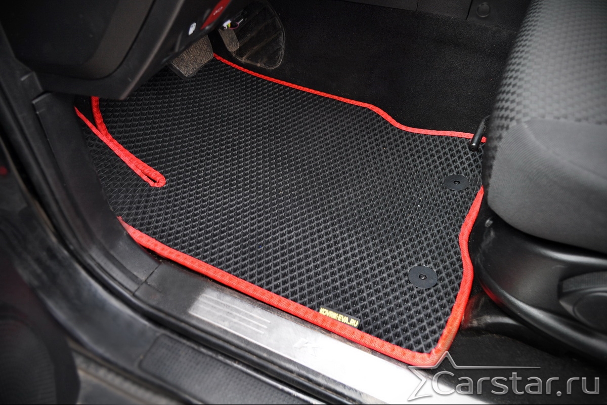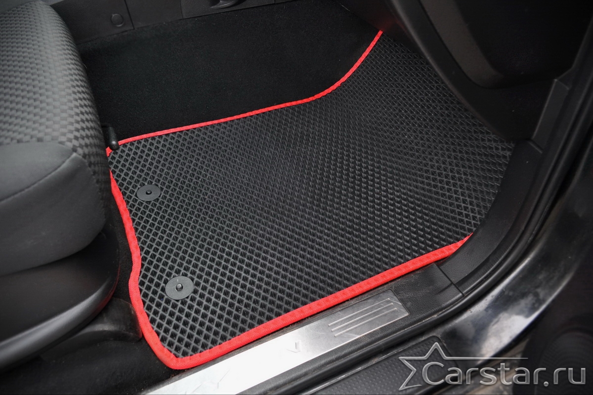 Коврики EVA надёжно крепятся с помощью оригинальных систем фиксации. Благодаря клипсам и липучке коврики защищены от смещений, что обеспечивает комфорт и безопасность вождения. Максимальное удобство также достигается точными, улучшенными лекалами для каждого автомобиля.