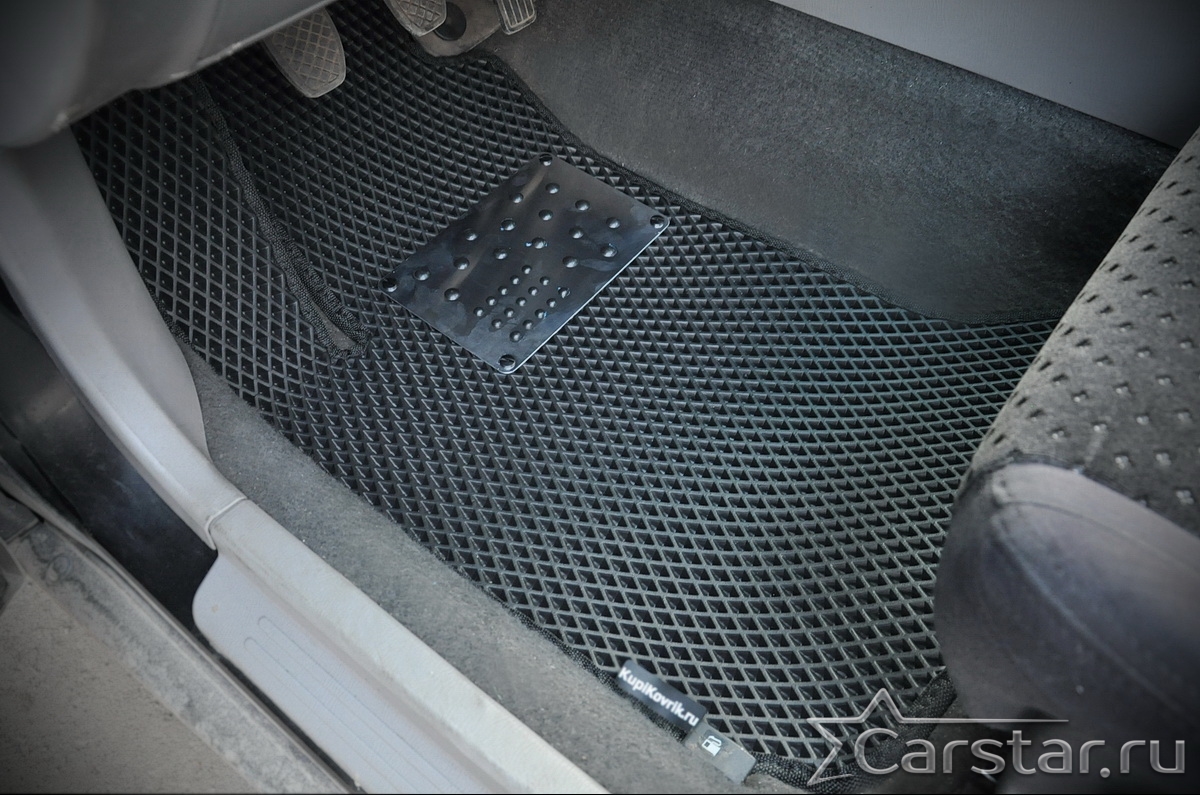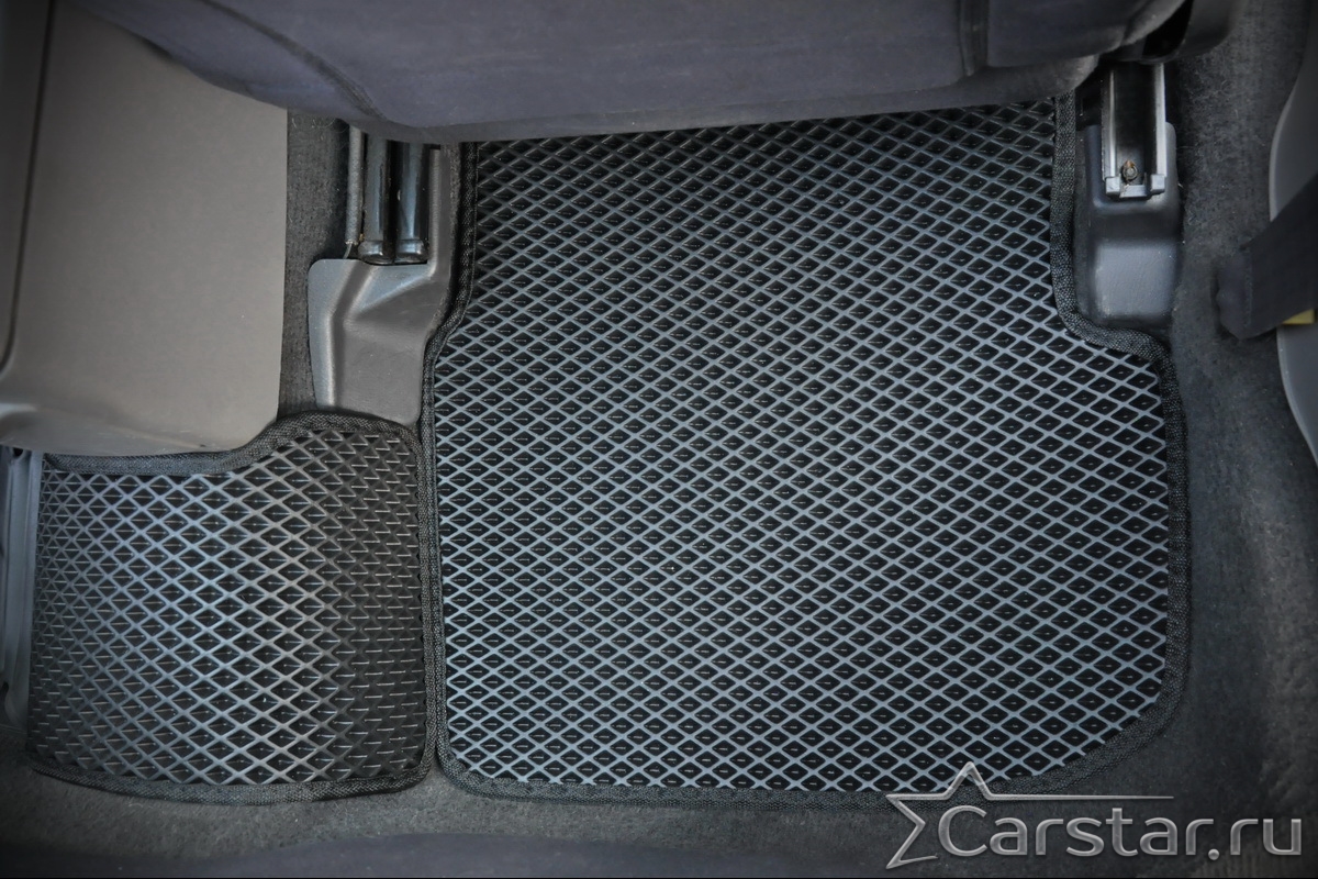 Толщина ковриков EVA составляет 10-12 мм. Глубина ячеек 7-8 мм. Такая толщина ковриков позволяет им служить довольно долго, не протираясь до 3 лет. А благодаря такой глубине ячеек коврик EVA площадью 1 кв.м. способен захватить около 3,5 л жидкости, сохраняя в чистоте вашу обувь и обивку салона.