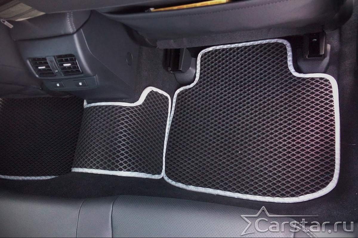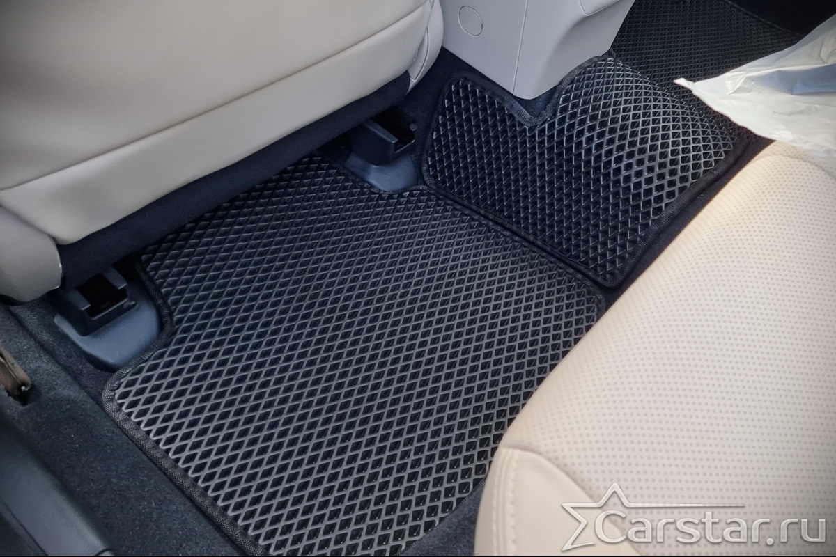 Толщина ковриков EVA составляет 10-12 мм. Глубина ячеек 7-8 мм. Такая толщина ковриков позволяет им служить довольно долго, не протираясь до 3 лет. А благодаря такой глубине ячеек коврик EVA площадью 1 кв.м. способен захватить около 3,5 л жидкости, сохраняя в чистоте вашу обувь и обивку салона.