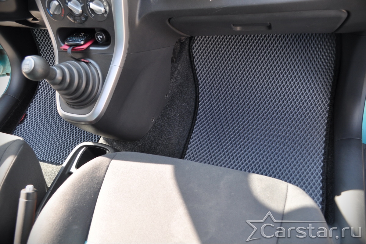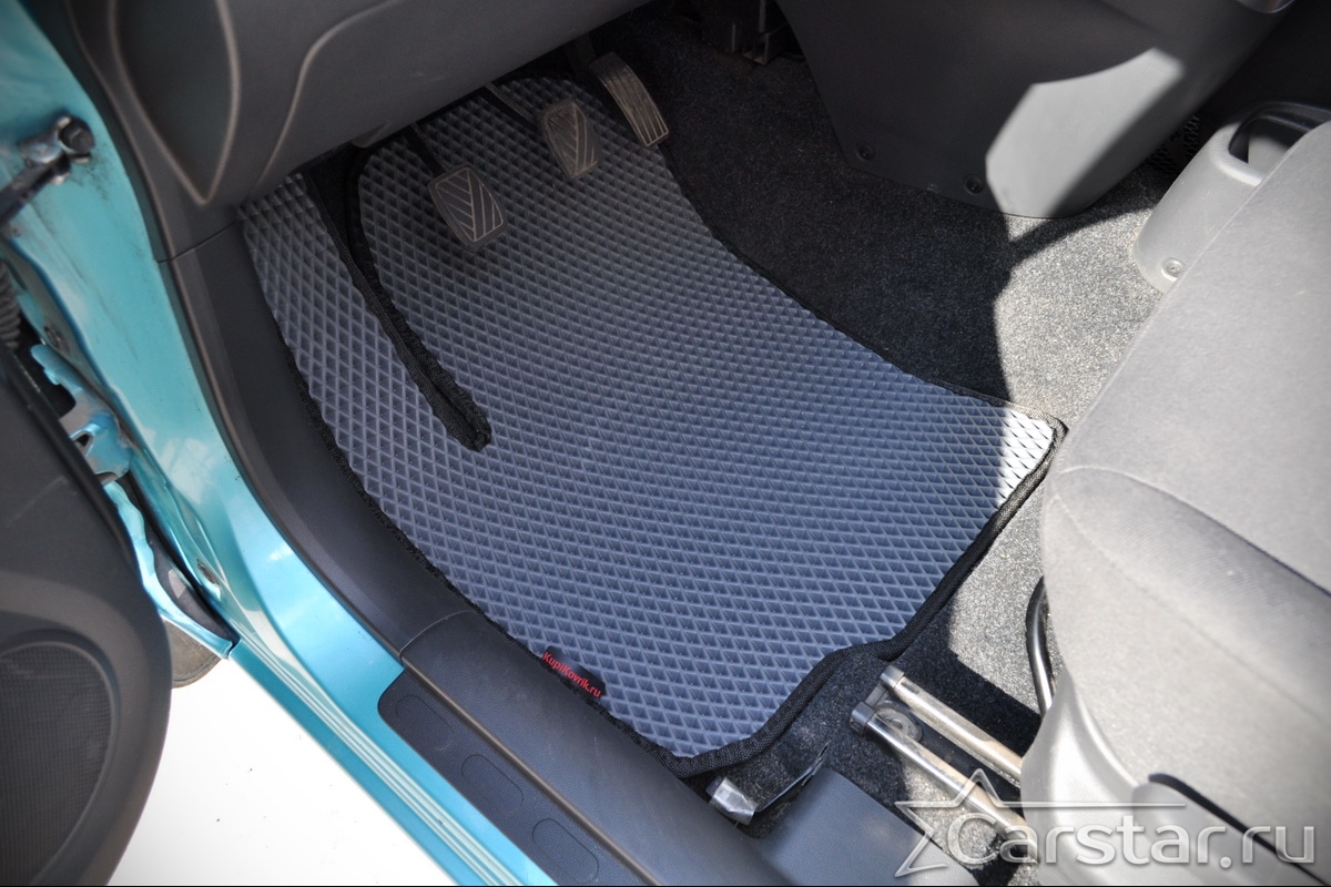 Толщина ковриков EVA составляет 10-12 мм. Глубина ячеек 7-8 мм. Такая толщина ковриков позволяет им служить довольно долго, не протираясь до 3 лет. А благодаря такой глубине ячеек коврик EVA площадью 1 кв.м. способен захватить около 3,5 л жидкости, сохраняя в чистоте вашу обувь и обивку салона.