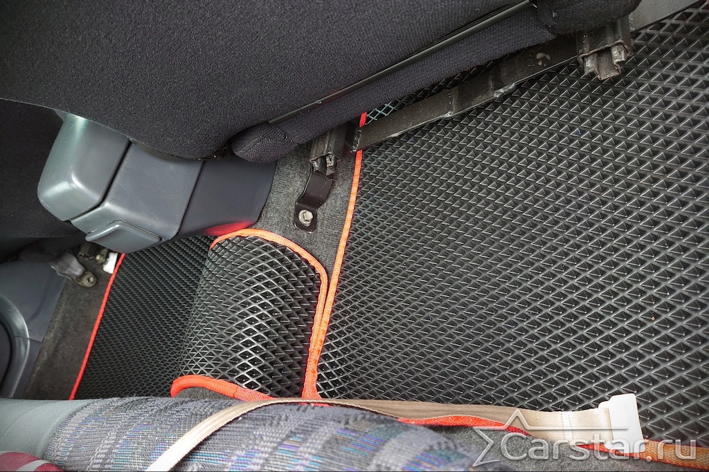 Толщина ковриков EVA составляет 10-12 мм. Глубина ячеек 7-8 мм. Такая толщина ковриков позволяет им служить довольно долго, не протираясь до 3 лет. А благодаря такой глубине ячеек коврик EVA площадью 1 кв.м. способен захватить около 3,5 л жидкости, сохраняя в чистоте вашу обувь и обивку салона.
