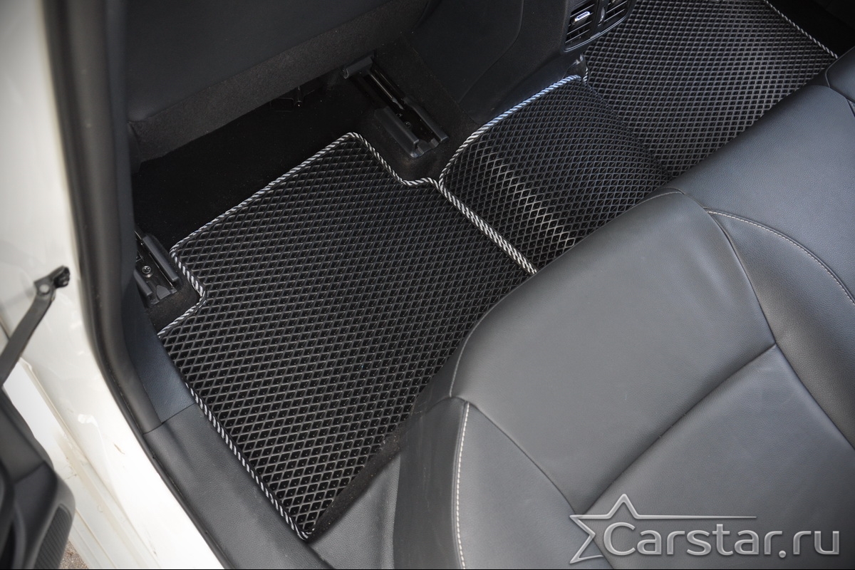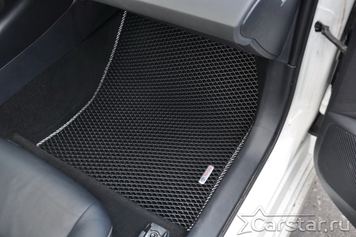 Толщина ковриков EVA составляет 10-12 мм. Глубина ячеек 7-8 мм. Такая толщина ковриков позволяет им служить довольно долго, не протираясь до 3 лет. А благодаря такой глубине ячеек коврик EVA площадью 1 кв.м. способен захватить около 3,5 л жидкости, сохраняя в чистоте вашу обувь и обивку салона.