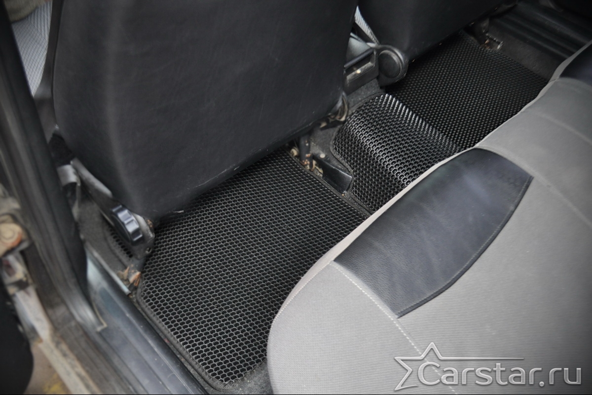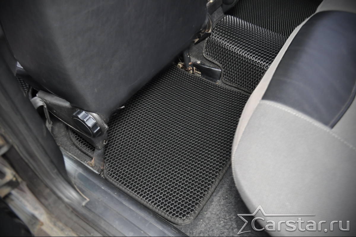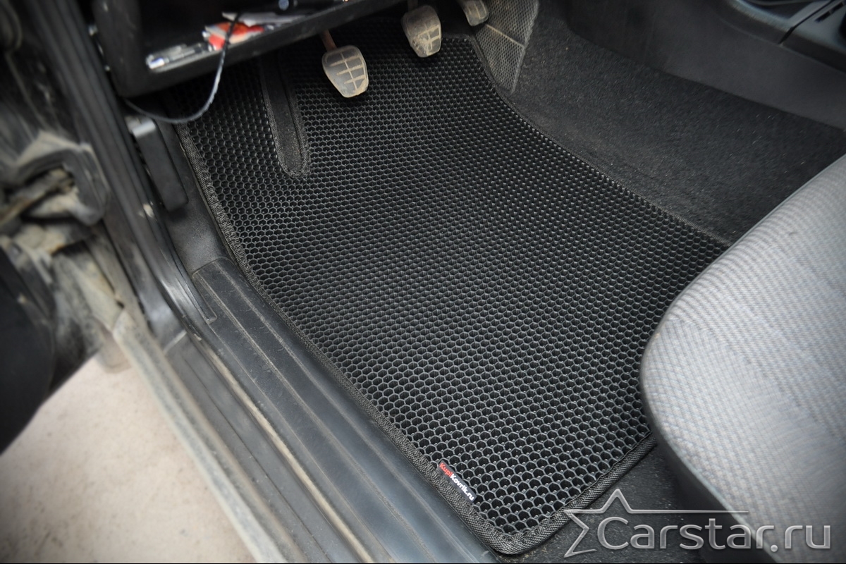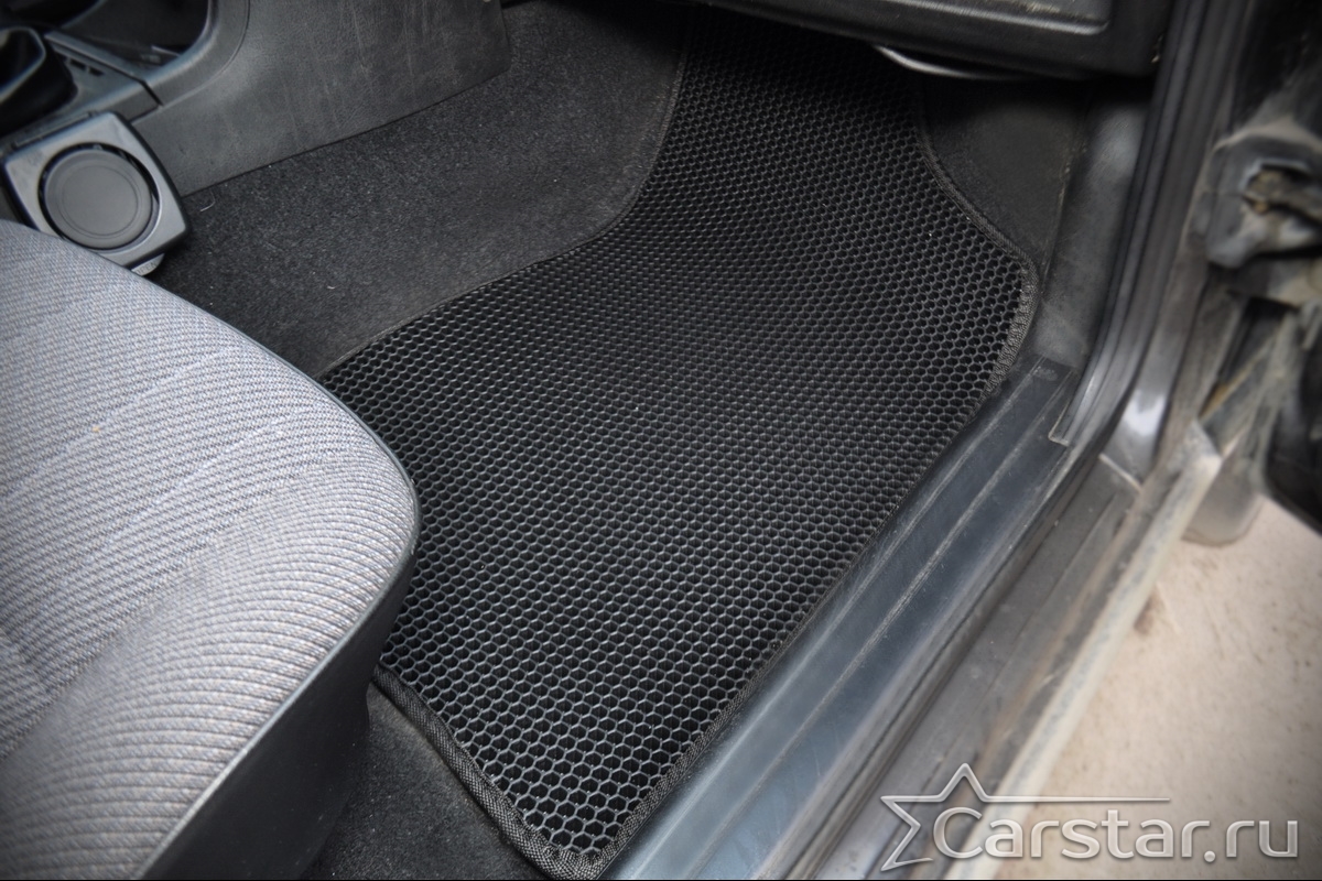 Толщина ковриков EVA составляет 10-12 мм. Глубина ячеек 7-8 мм. Такая толщина ковриков позволяет им служить довольно долго, не протираясь до 3 лет. А благодаря такой глубине ячеек коврик EVA площадью 1 кв.м. способен захватить около 3,5 л жидкости, сохраняя в чистоте вашу обувь и обивку салона.