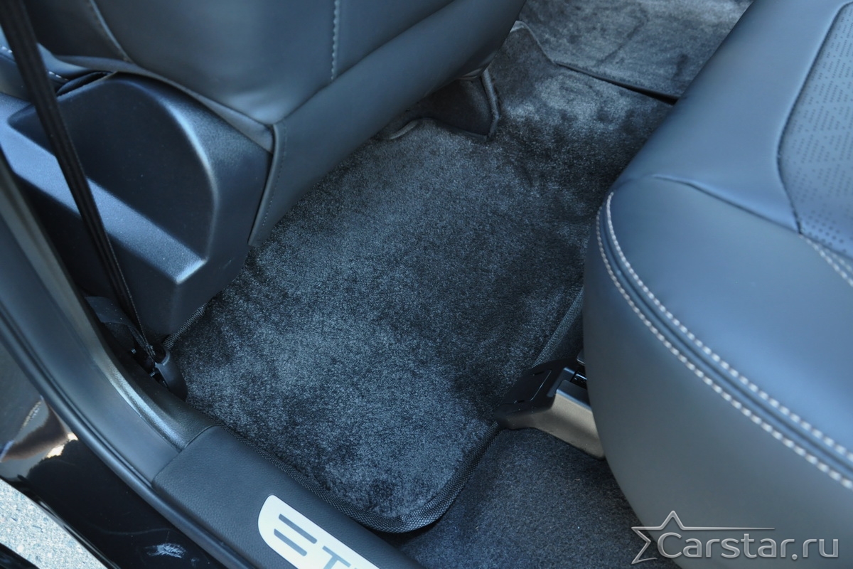 Текстильные коврики надёжно крепятся с помощью оригинальных систем фиксации. Обратная сторона имеет противоскользящее покрытие, что обеспечивает защиту от смещений и безопасность. Максимальное удобство достигается точными лекалами.