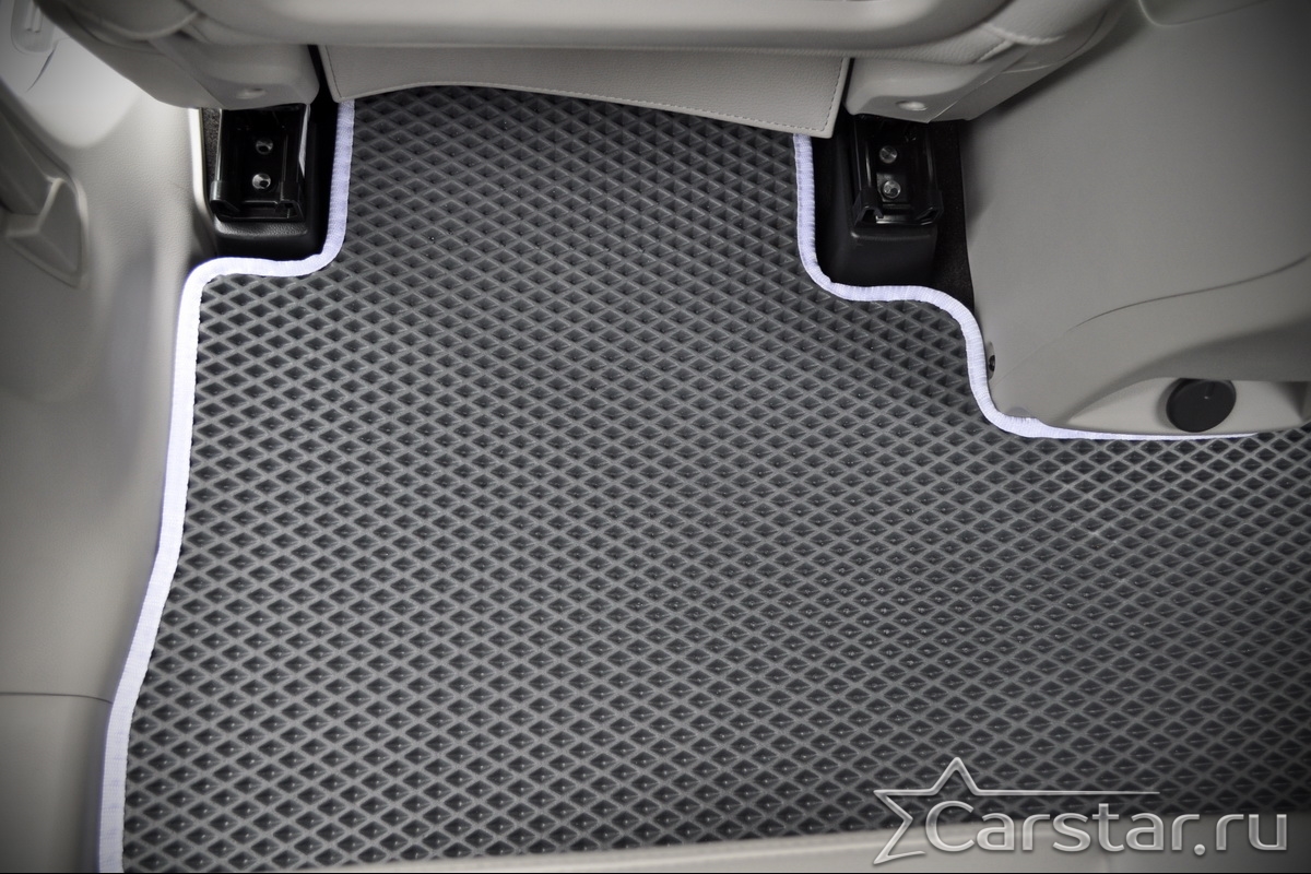 Текстильные коврики надёжно крепятся с помощью оригинальных систем фиксации. Обратная сторона имеет противоскользящее покрытие, что обеспечивает защиту от смещений и безопасность. Максимальное удобство достигается точными лекалами.