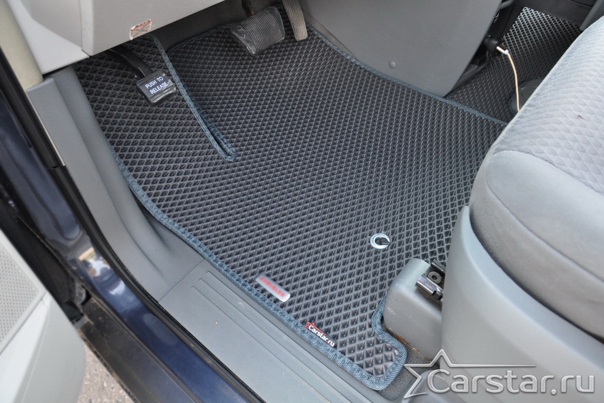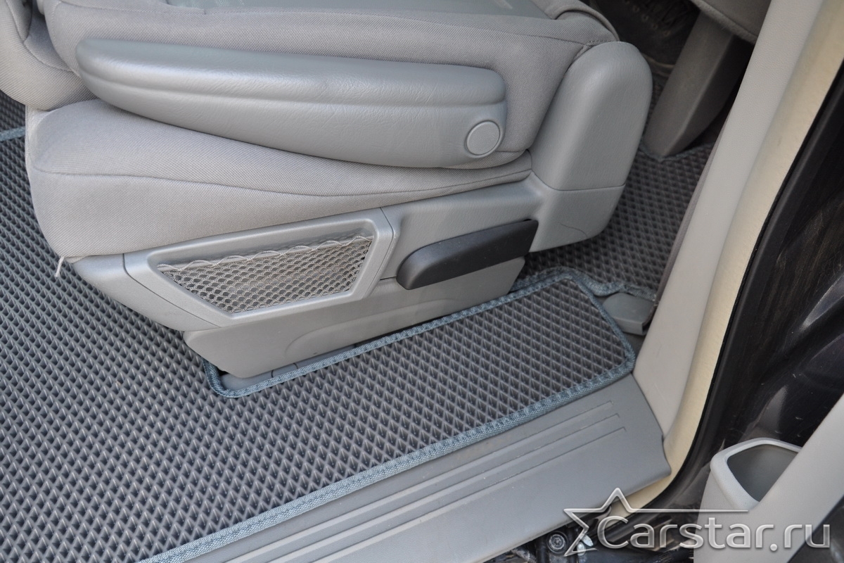 Текстильные коврики надёжно крепятся с помощью оригинальных систем фиксации. Обратная сторона имеет противоскользящее покрытие, что обеспечивает защиту от смещений и безопасность. Максимальное удобство достигается точными лекалами.