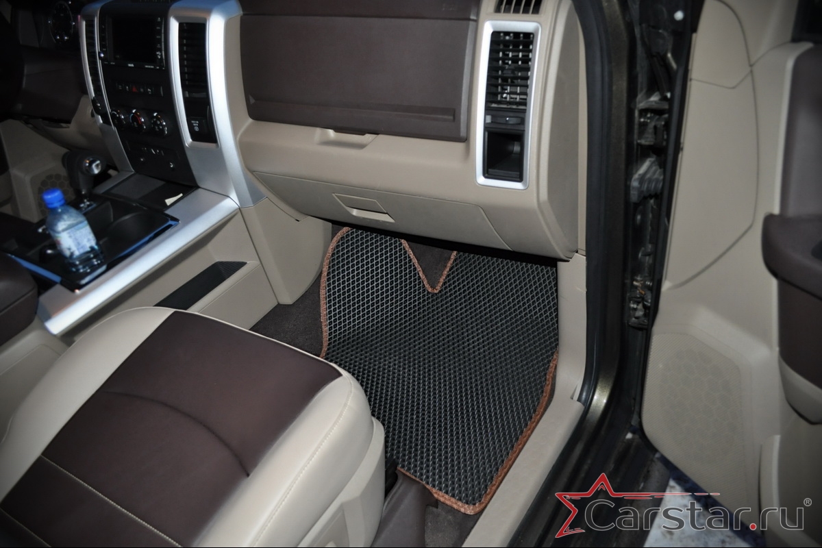 Текстильные автомобильные коврики Dodge RAM IV кабина 1.5 (2008-2018) – это классический аксессуар, который обеспечит салону автомобиля неизменную чистоту, порядок и уют. Компания Carstar предлагает изделия из качественного ковролина в сочетании с полипропиленовым основанием на шипах, такая комбинация делает их прочными и водонепроницаемыми.