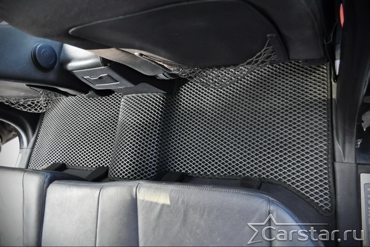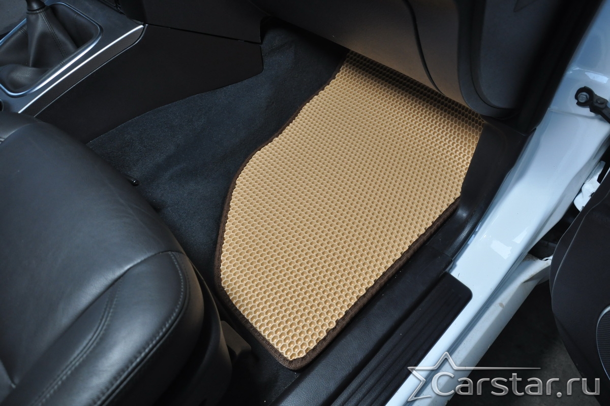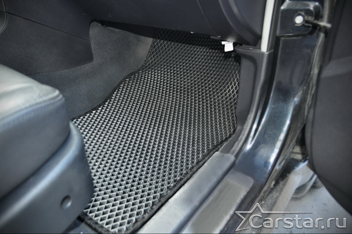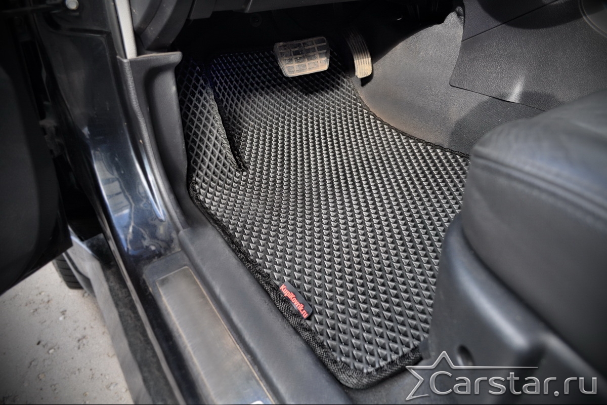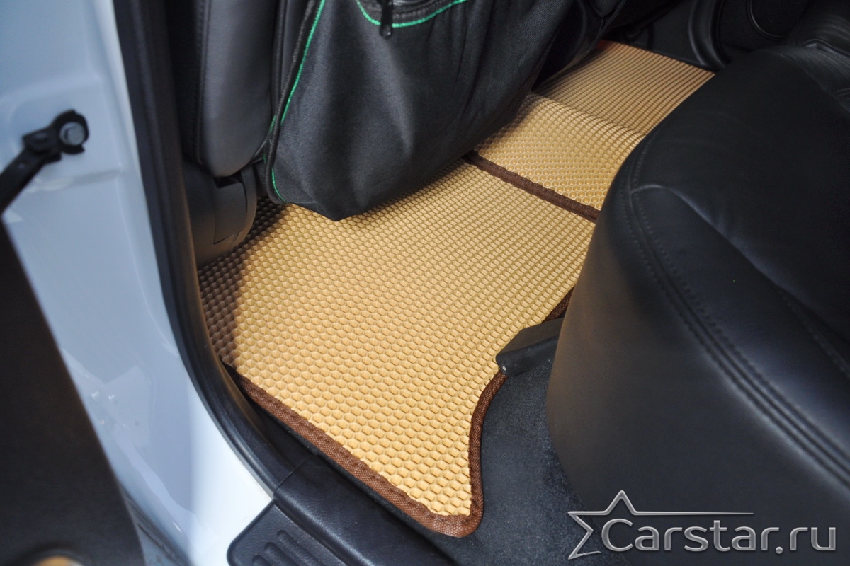Текстильные коврики надёжно крепятся с помощью оригинальных систем фиксации. Обратная сторона имеет противоскользящее покрытие, что обеспечивает защиту от смещений и безопасность. Максимальное удобство достигается точными лекалами.