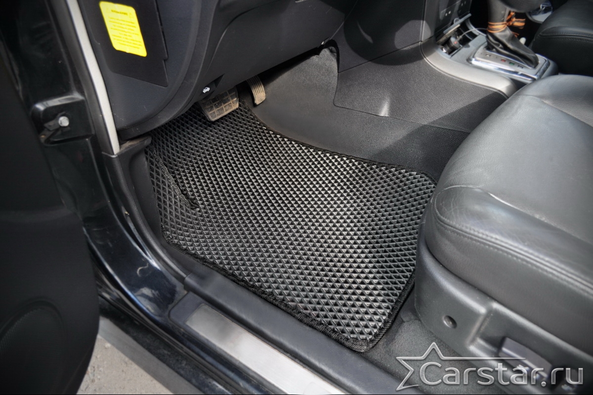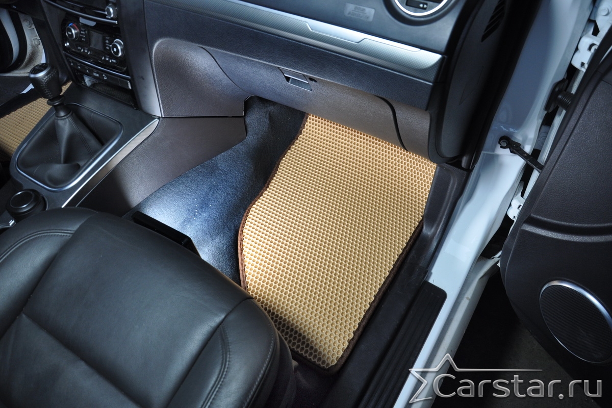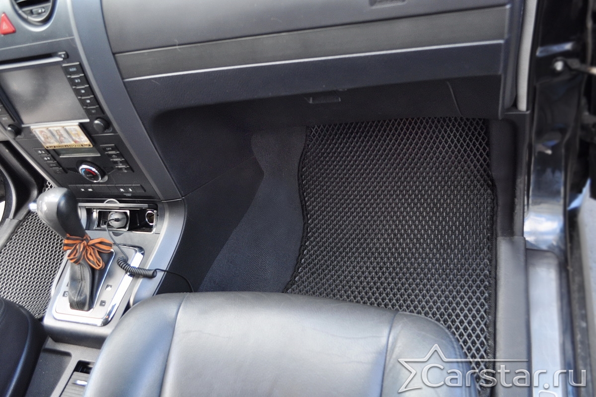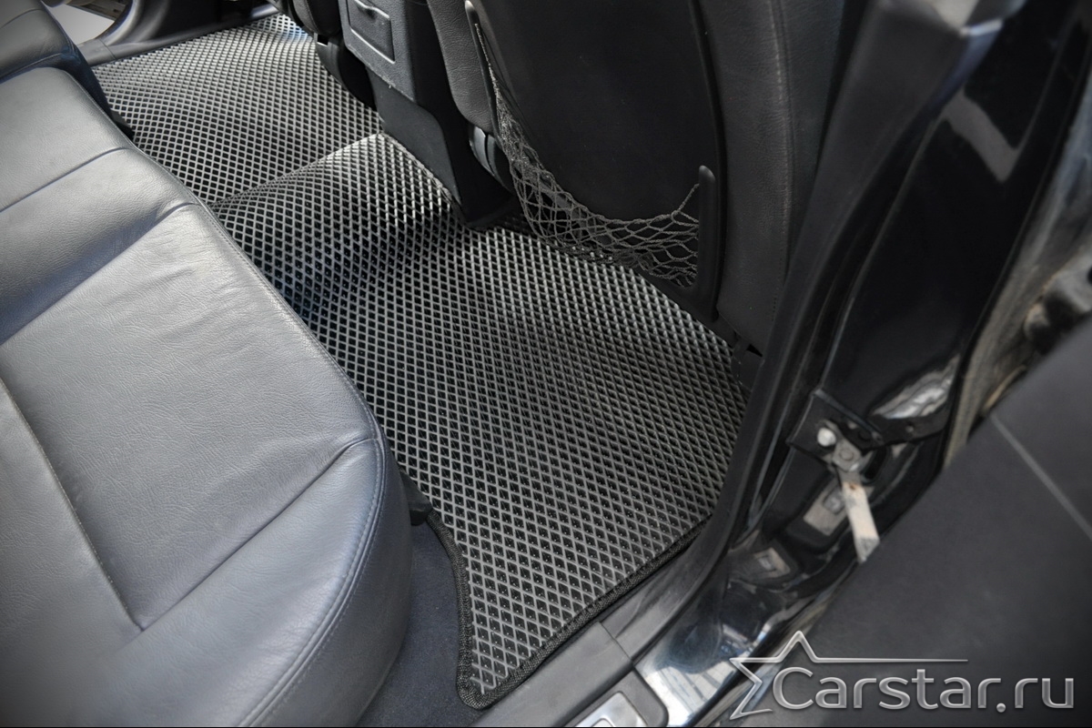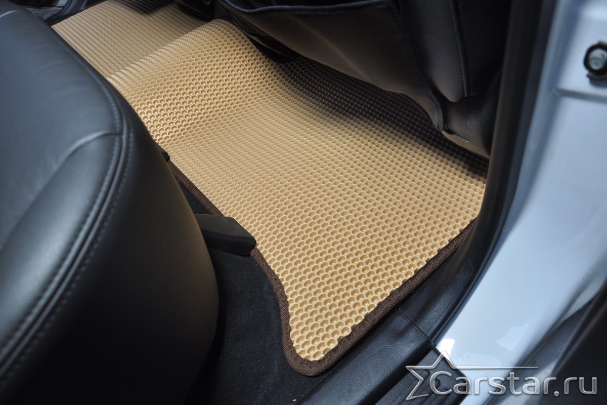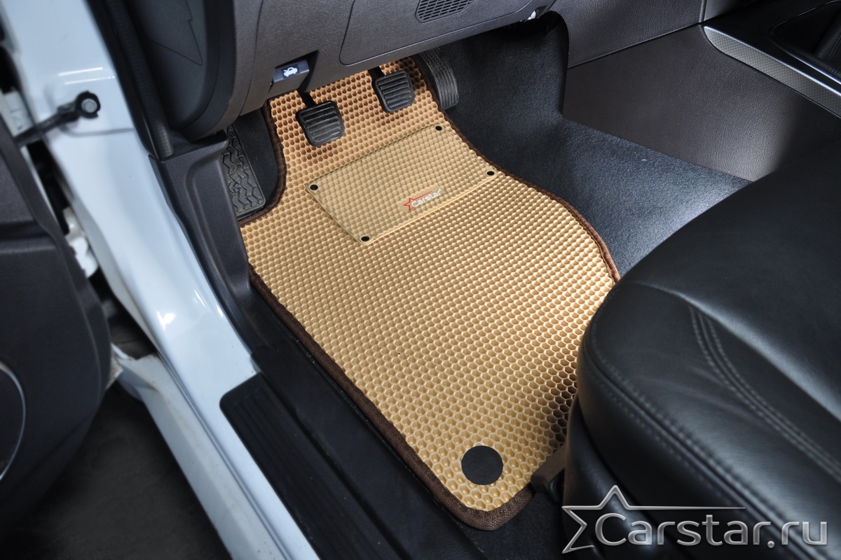 Текстильные коврики надёжно крепятся с помощью оригинальных систем фиксации. Обратная сторона имеет противоскользящее покрытие, что обеспечивает защиту от смещений и безопасность. Максимальное удобство достигается точными лекалами.