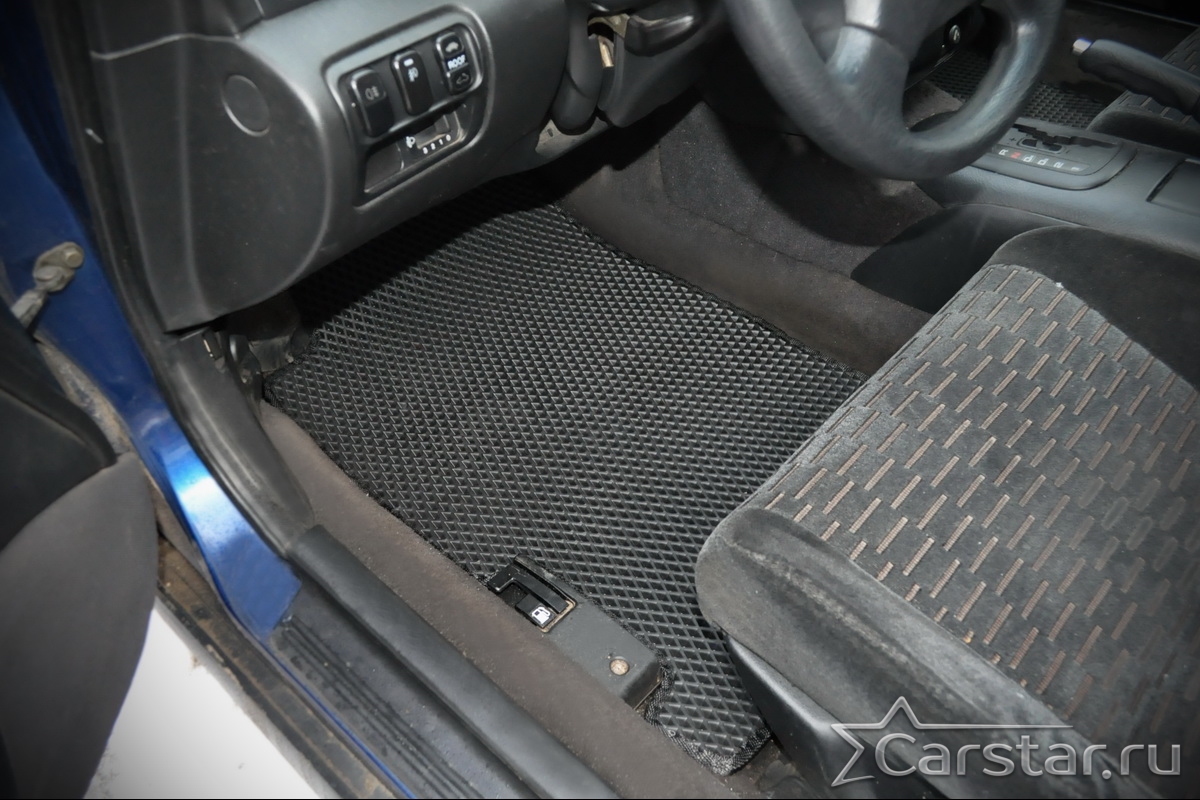 Текстильные коврики надёжно крепятся с помощью оригинальных систем фиксации. Обратная сторона имеет противоскользящее покрытие, что обеспечивает защиту от смещений и безопасность. Максимальное удобство достигается точными лекалами.