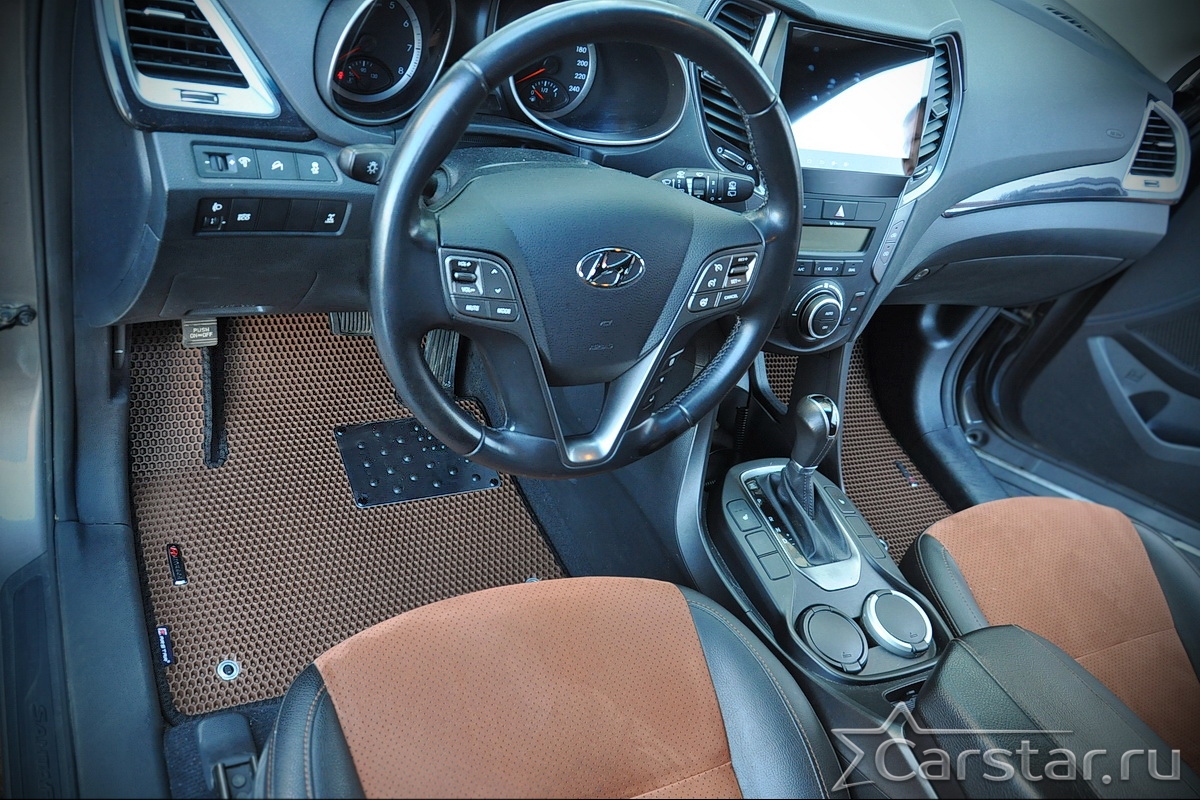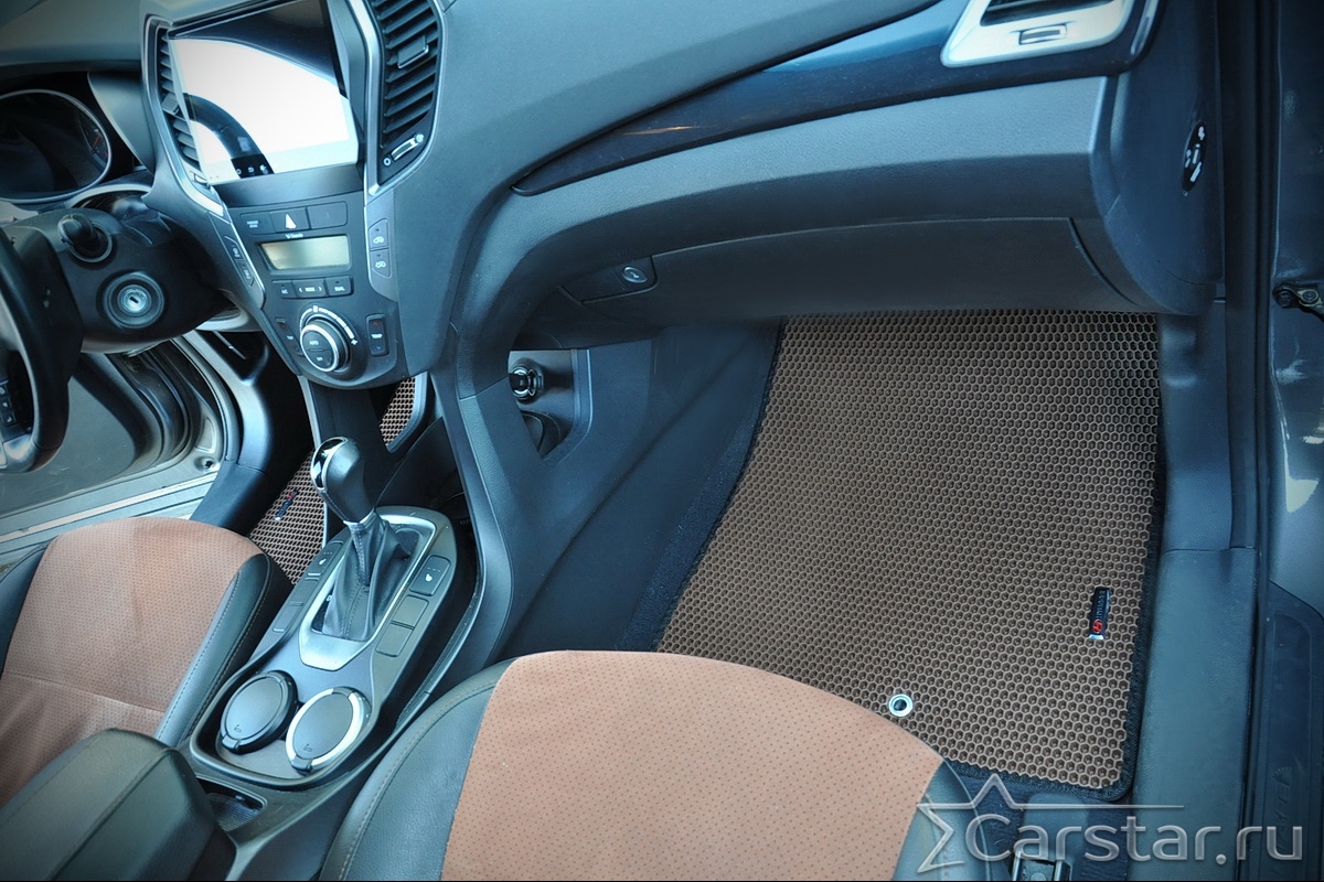 Текстильные автомобильные коврики Hyundai Santa Fe III 3 ряда (2012-2018) – это классический аксессуар, который обеспечит салону автомобиля неизменную чистоту, порядок и уют. Компания Carstar предлагает изделия из качественного ковролина в сочетании с полипропиленовым основанием на шипах, такая комбинация делает их прочными и водонепроницаемыми.