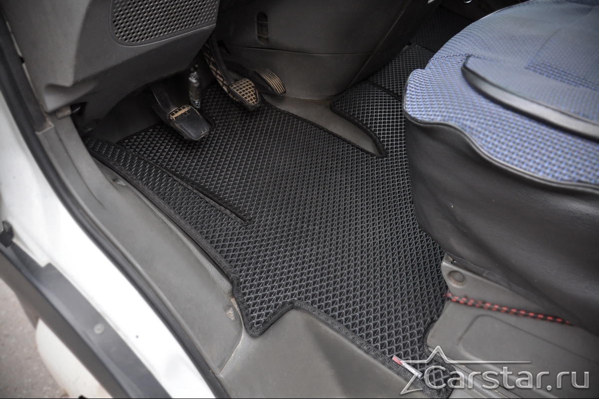 Приятный на ощупь густой плотный ворс текстильных ковриков придаст салону роскошный вид. Широкой выбор цветовой палитры ковролина и окантовки коврика не оставит равнодушным ни одного искушенного автолюбителя.