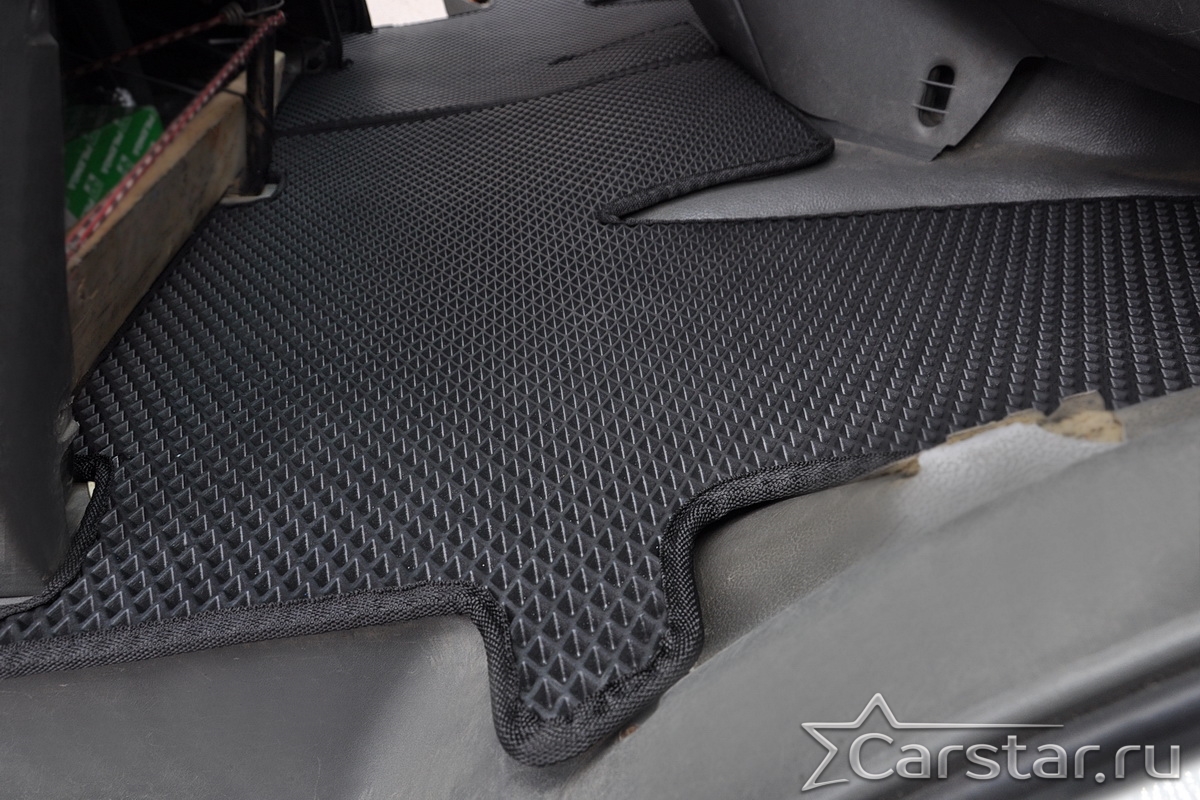 Текстильные коврики надёжно крепятся с помощью оригинальных систем фиксации. Обратная сторона имеет противоскользящее покрытие, что обеспечивает защиту от смещений и безопасность. Максимальное удобство достигается точными лекалами.