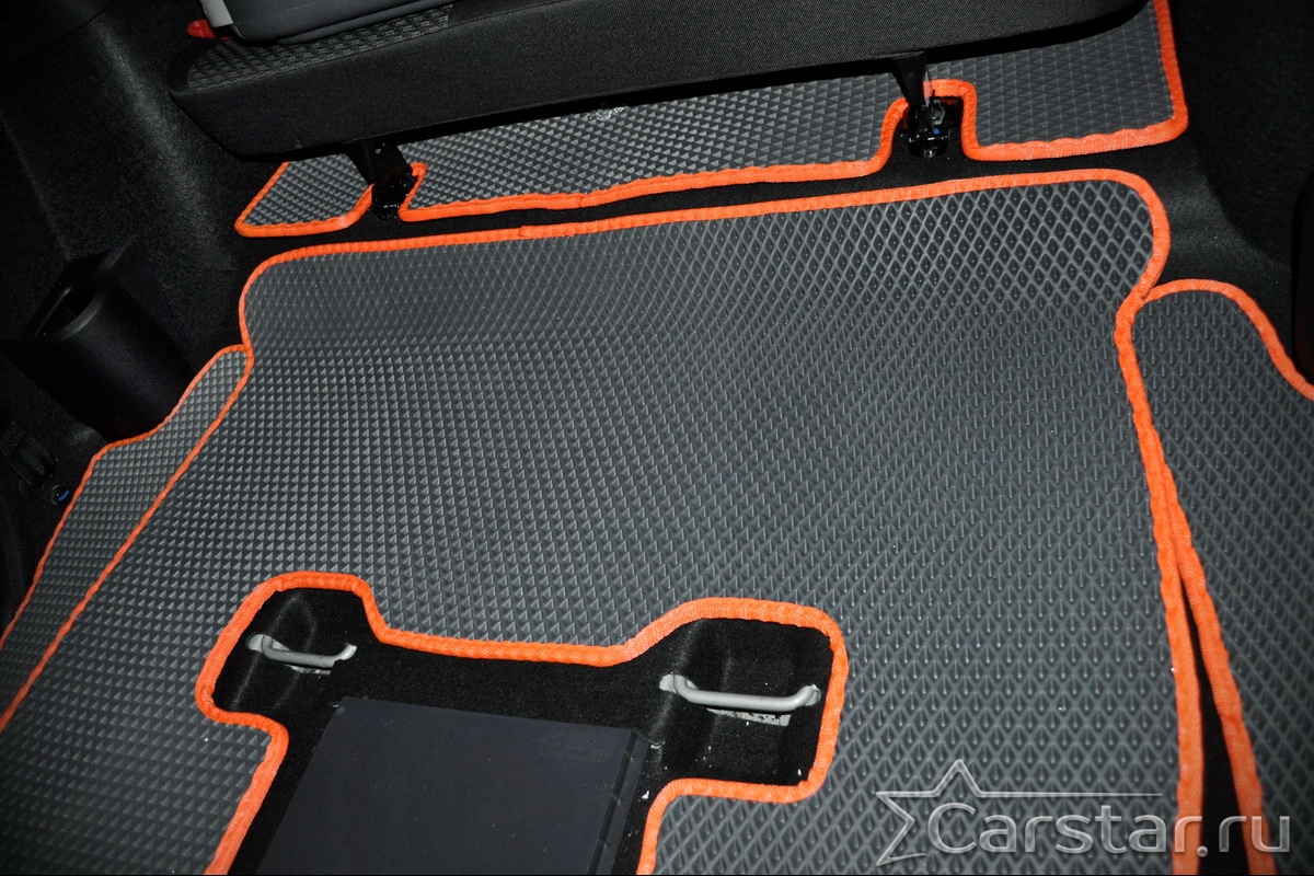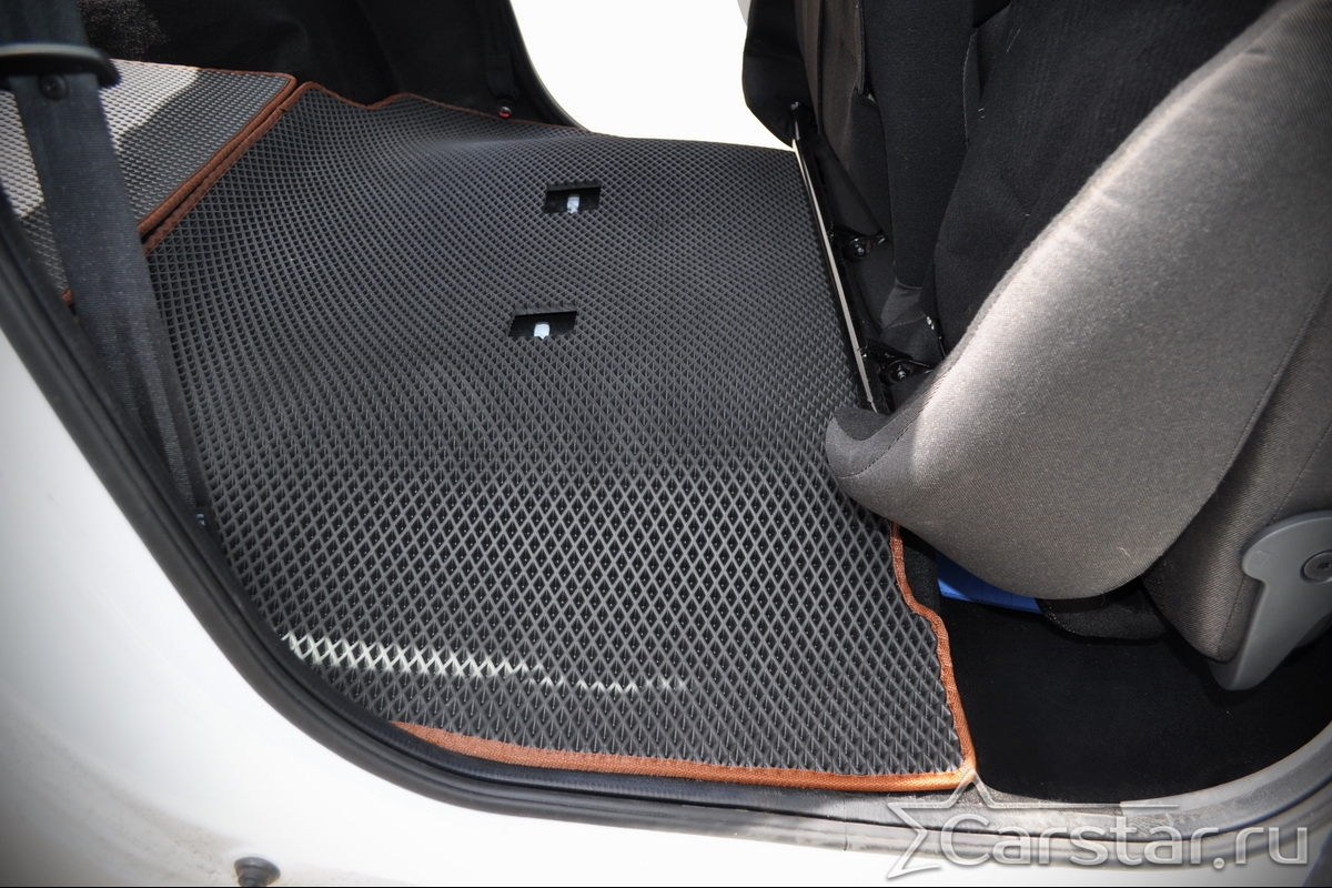 Текстильные коврики надёжно крепятся с помощью оригинальных систем фиксации. Обратная сторона имеет противоскользящее покрытие, что обеспечивает защиту от смещений и безопасность. Максимальное удобство достигается точными лекалами.