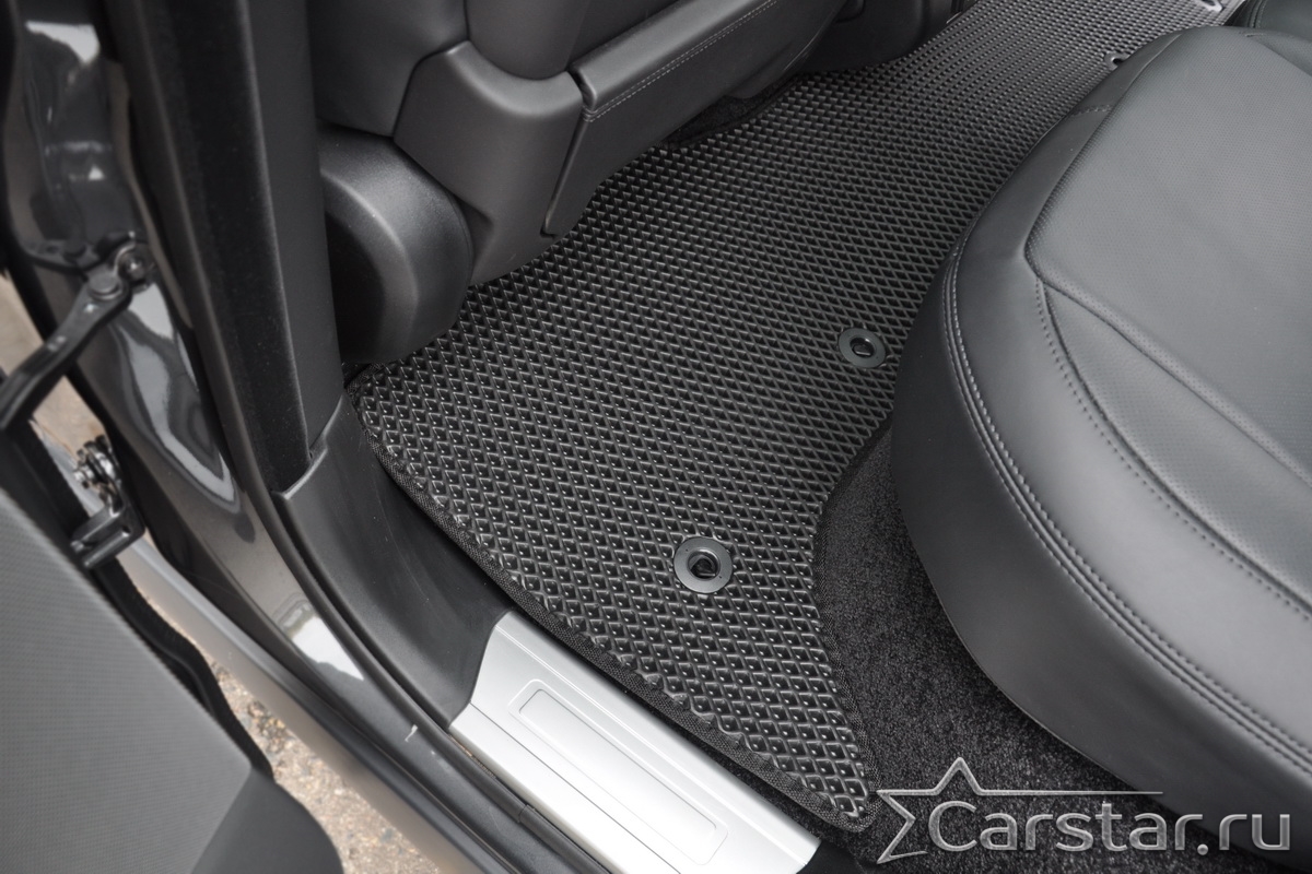 Текстильные коврики надёжно крепятся с помощью оригинальных систем фиксации. Обратная сторона имеет противоскользящее покрытие, что обеспечивает защиту от смещений и безопасность. Максимальное удобство достигается точными лекалами.