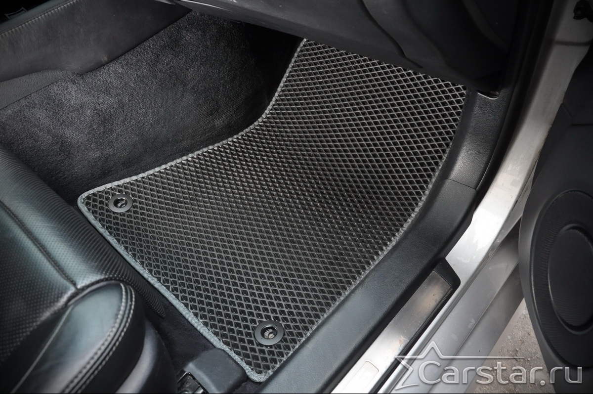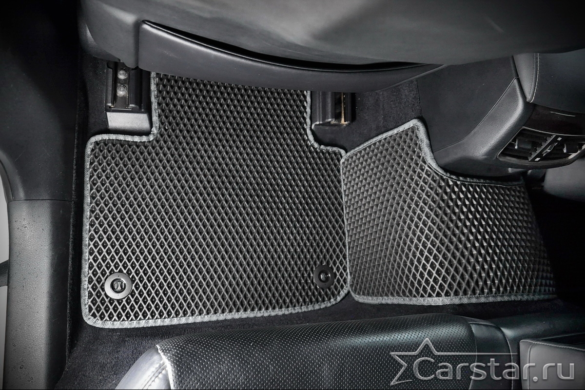 Текстильные коврики надёжно крепятся с помощью оригинальных систем фиксации. Обратная сторона имеет противоскользящее покрытие, что обеспечивает защиту от смещений и безопасность. Максимальное удобство достигается точными лекалами.