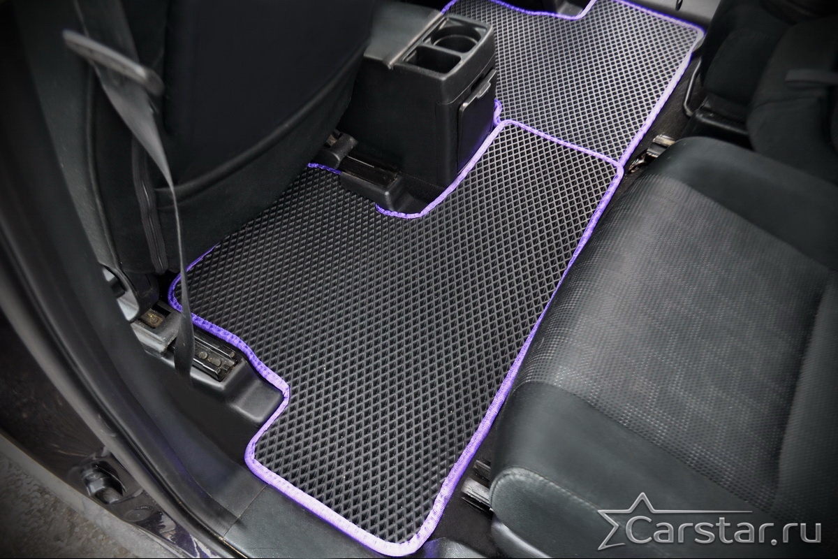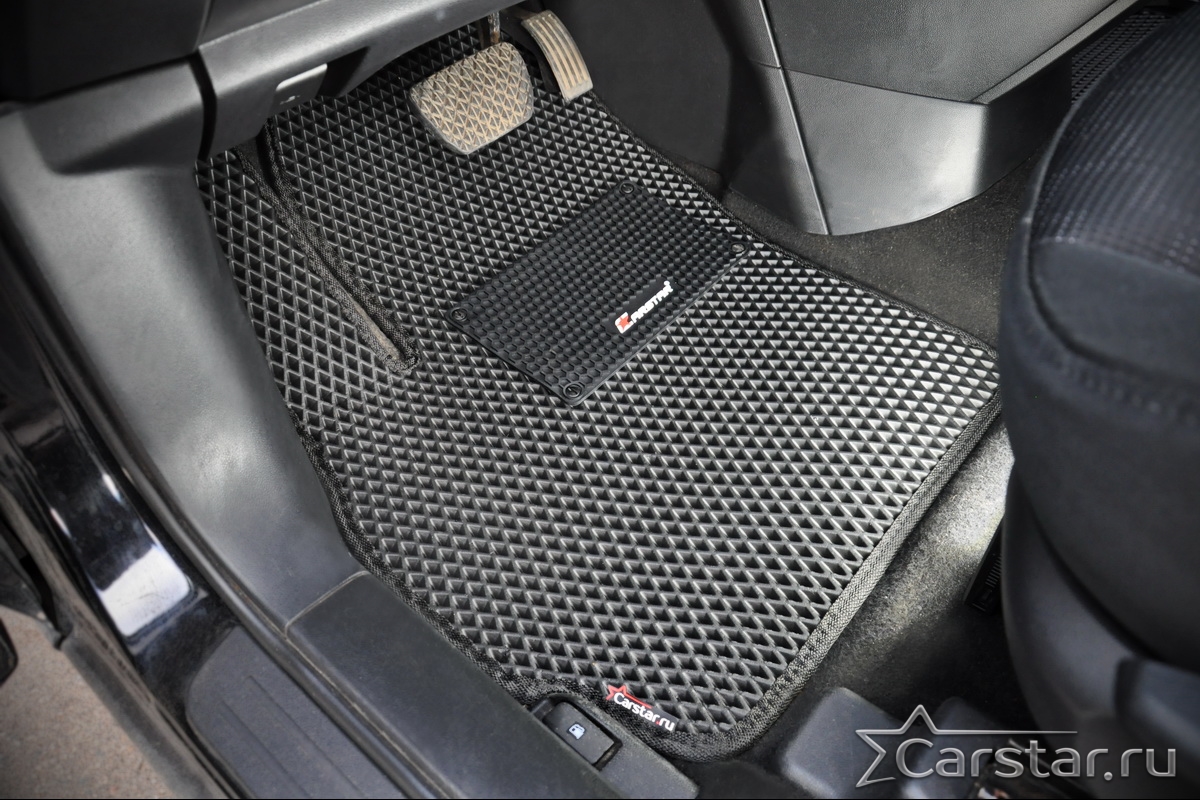 Текстильные коврики надёжно крепятся с помощью оригинальных систем фиксации. Обратная сторона имеет противоскользящее покрытие, что обеспечивает защиту от смещений и безопасность. Максимальное удобство достигается точными лекалами.