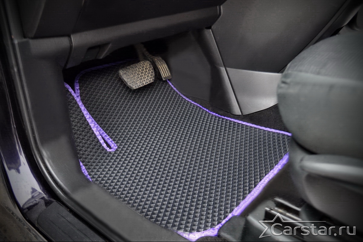Приятный на ощупь густой плотный ворс текстильных ковриков придаст салону роскошный вид. Широкой выбор цветовой палитры ковролина и окантовки коврика не оставит равнодушным ни одного искушенного автолюбителя.