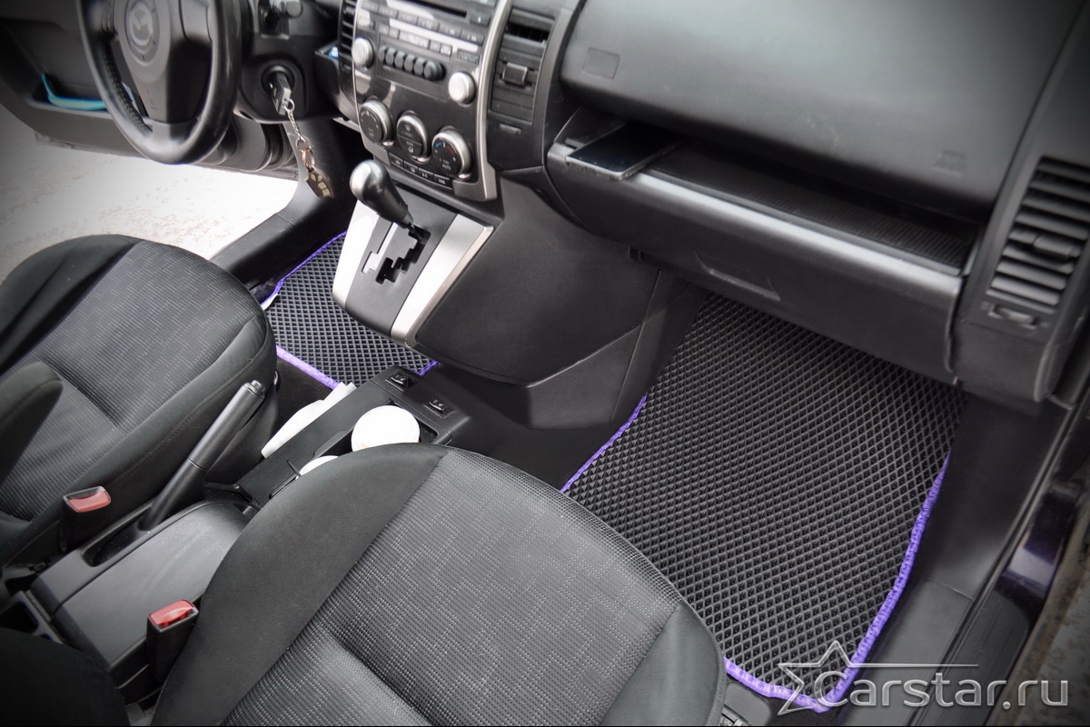 Текстильные автомобильные коврики Mazda 5 I 3 ряда (2005-2010) – это классический аксессуар, который обеспечит салону автомобиля неизменную чистоту, порядок и уют. Компания Carstar предлагает изделия из качественного ковролина в сочетании с полипропиленовым основанием на шипах, такая комбинация делает их прочными и водонепроницаемыми.