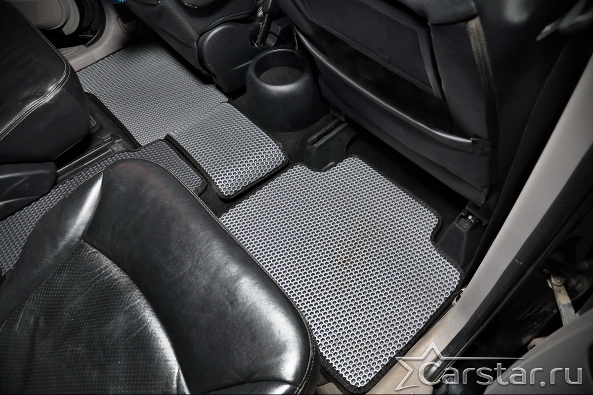 Текстильные коврики надёжно крепятся с помощью оригинальных систем фиксации. Обратная сторона имеет противоскользящее покрытие, что обеспечивает защиту от смещений и безопасность. Максимальное удобство достигается точными лекалами.