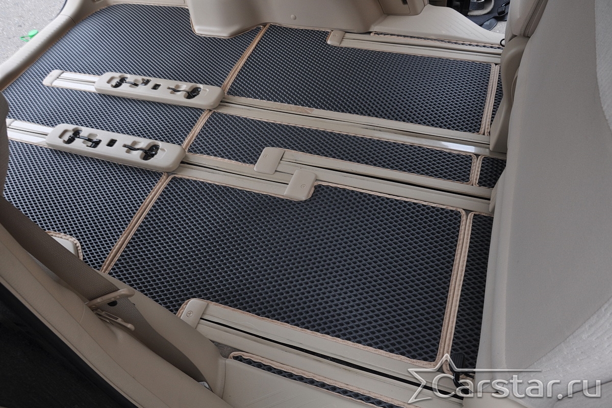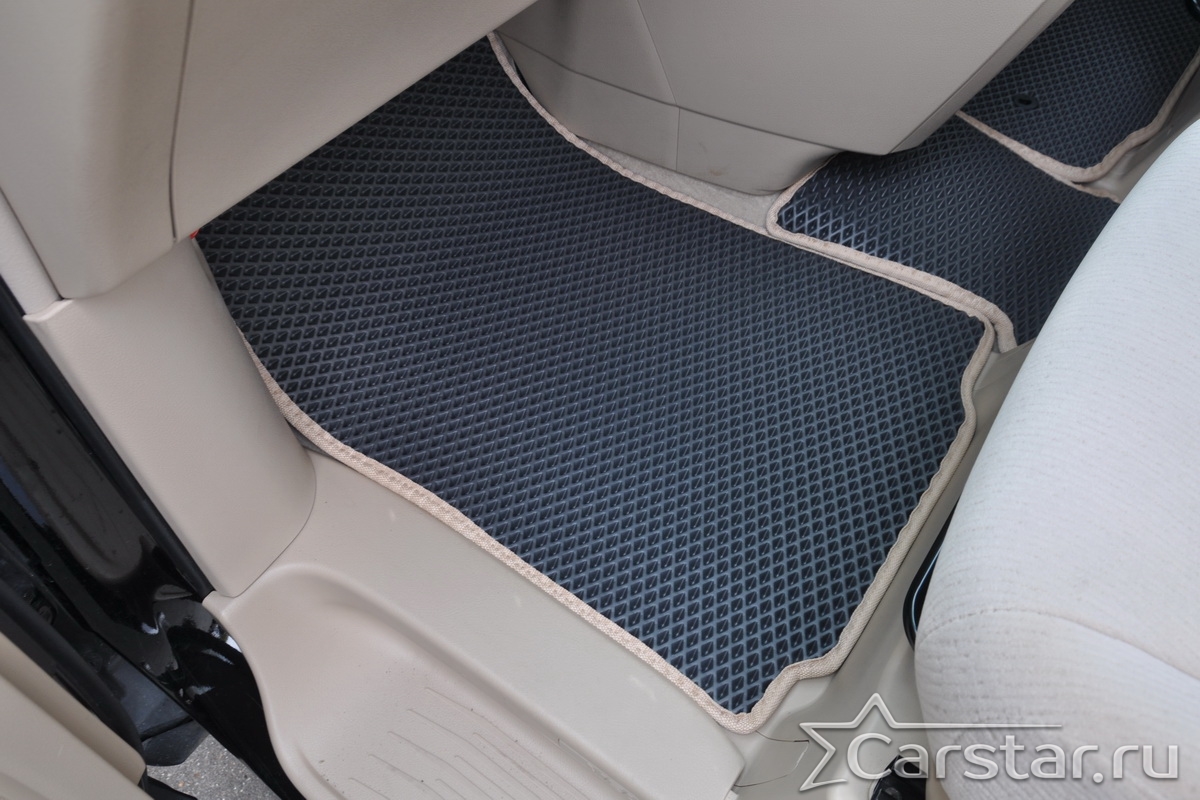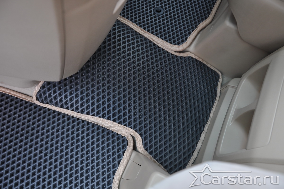 Текстильные коврики надёжно крепятся с помощью оригинальных систем фиксации. Обратная сторона имеет противоскользящее покрытие, что обеспечивает защиту от смещений и безопасность. Максимальное удобство достигается точными лекалами.