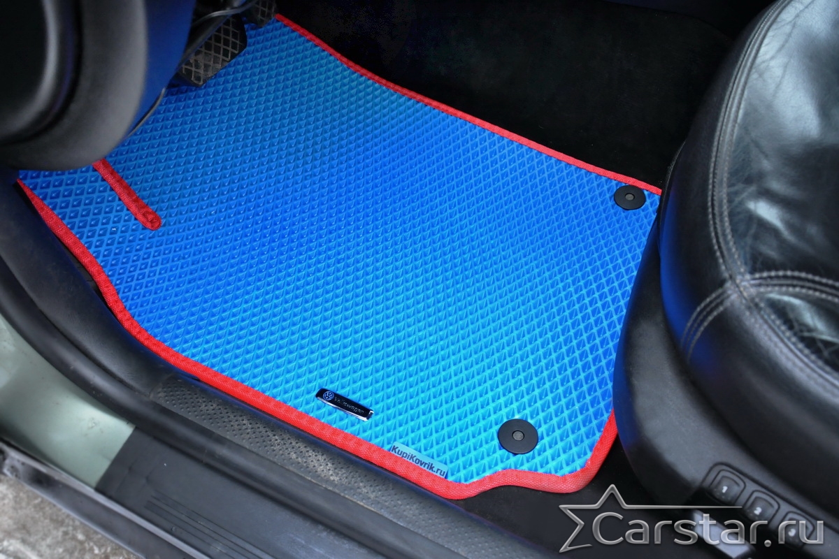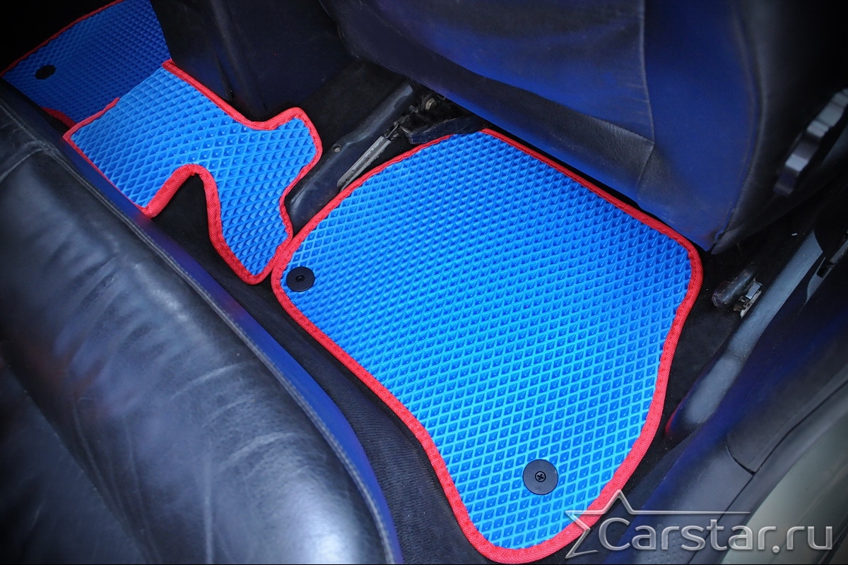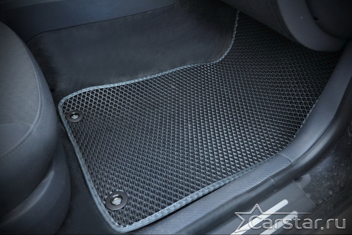 Текстильные коврики надёжно крепятся с помощью оригинальных систем фиксации. Обратная сторона имеет противоскользящее покрытие, что обеспечивает защиту от смещений и безопасность. Максимальное удобство достигается точными лекалами.